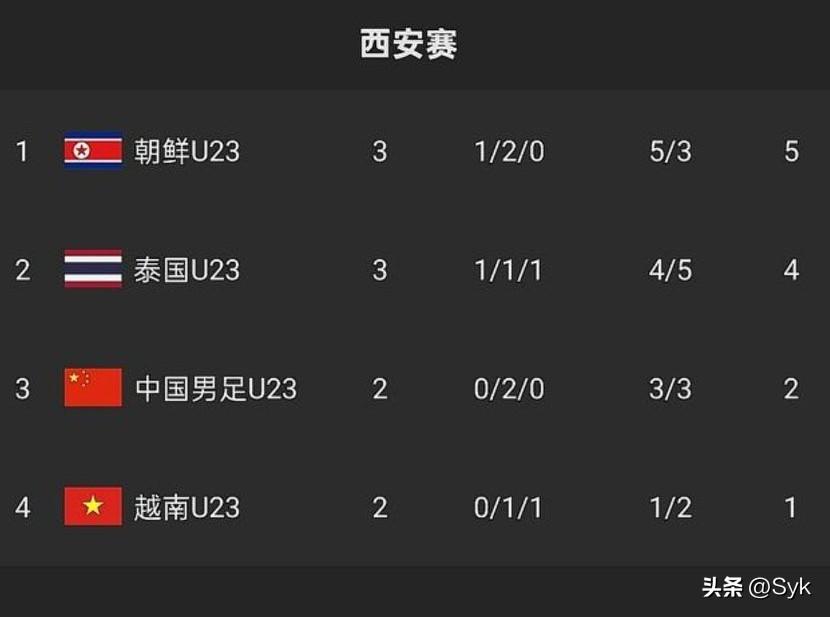 西安四国赛收官战形势彻底明朗!朝鲜U23在下午的比赛中3-1击败泰国U23,以1胜2平积5分、净胜球+2的成绩暂居榜首,也让U23国足的夺冠之路迎来了全新的机会。