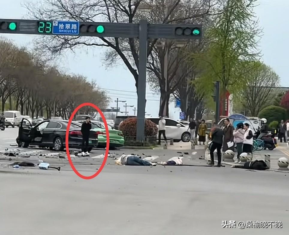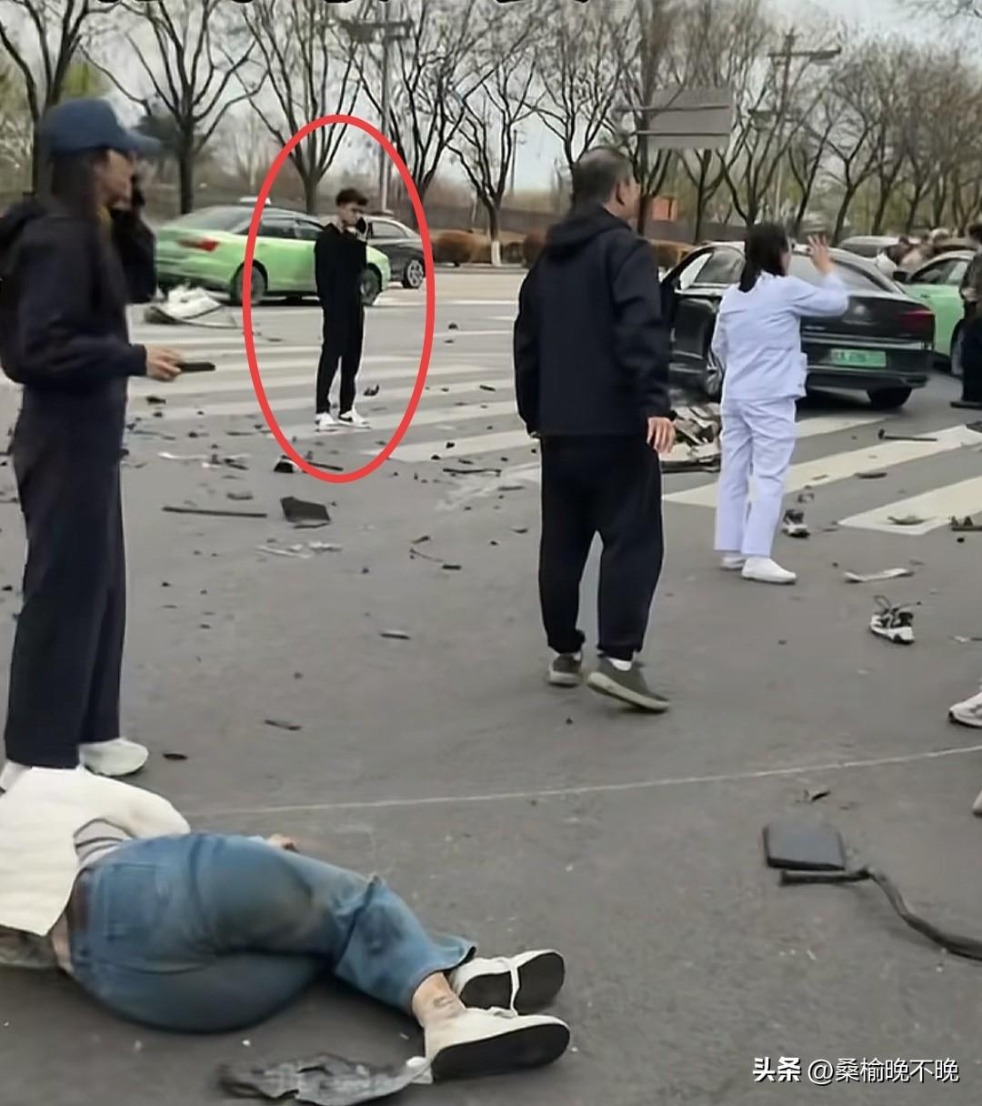 真是年轻人,闯这么大祸还这么淡定?下车后手还插在裤兜里,还非常气定神闲的打着电话!这次事故其实完全是可以避免的,但凡车速慢一点,这样出租车也能做出避让反应了,可惜黑色轿车速度太快,出租车明显来不及避让了,这才造成了一死两伤的局面!现在应该肠子都悔青了吧!