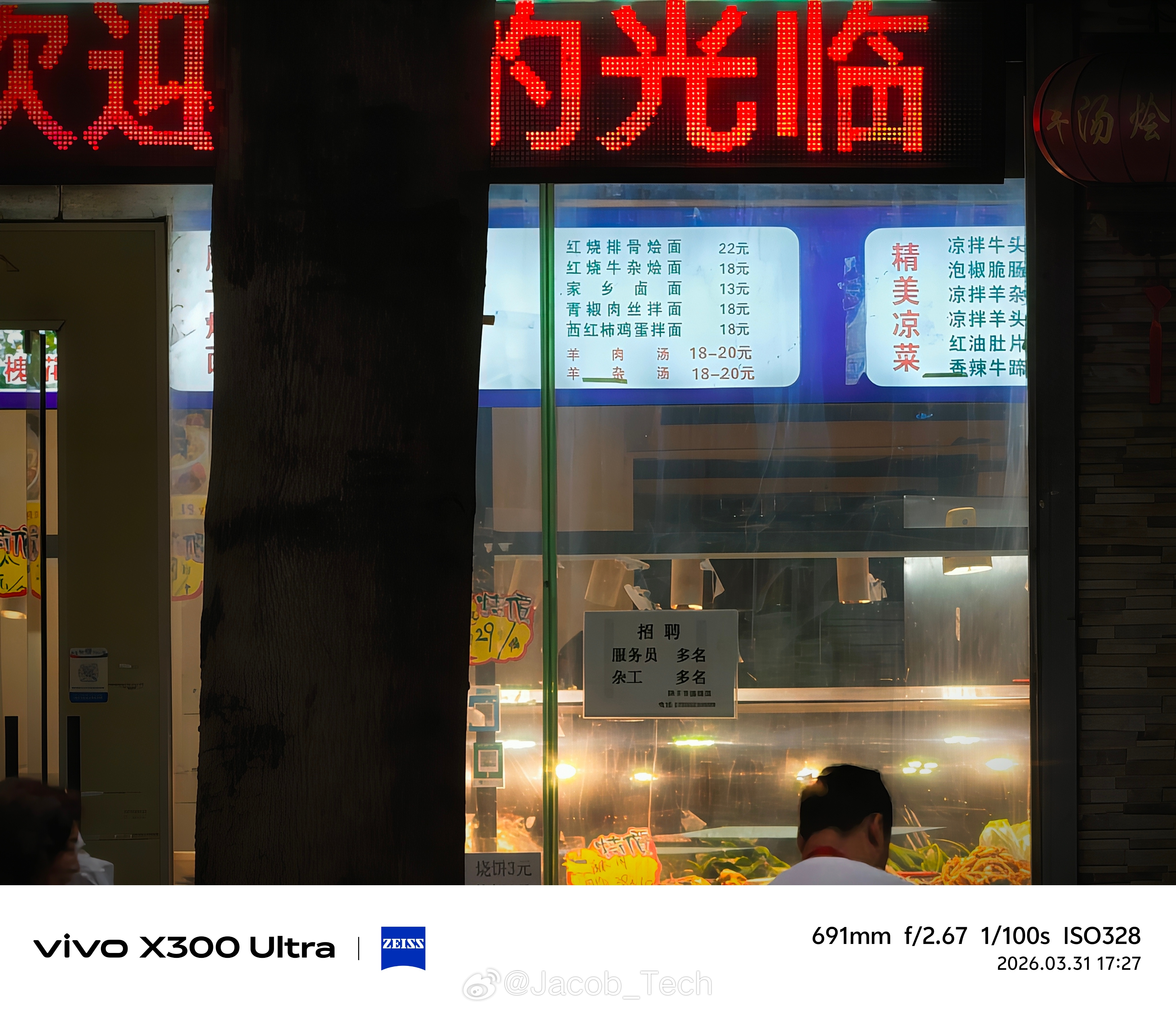 哇!真的刚刚下飞机,肚子好饿呀回到家马不停蹄的下楼找东西吃结果商场整个在大装修,吃得都在对面马路于是乎直接掏出口袋的vivo X300 Ultra出来看看对面店的菜单哇!真的不得了,也太清楚了就连店里面的菜单都能清楚看到hello?你望远镜啊?这个长焦可太顶了