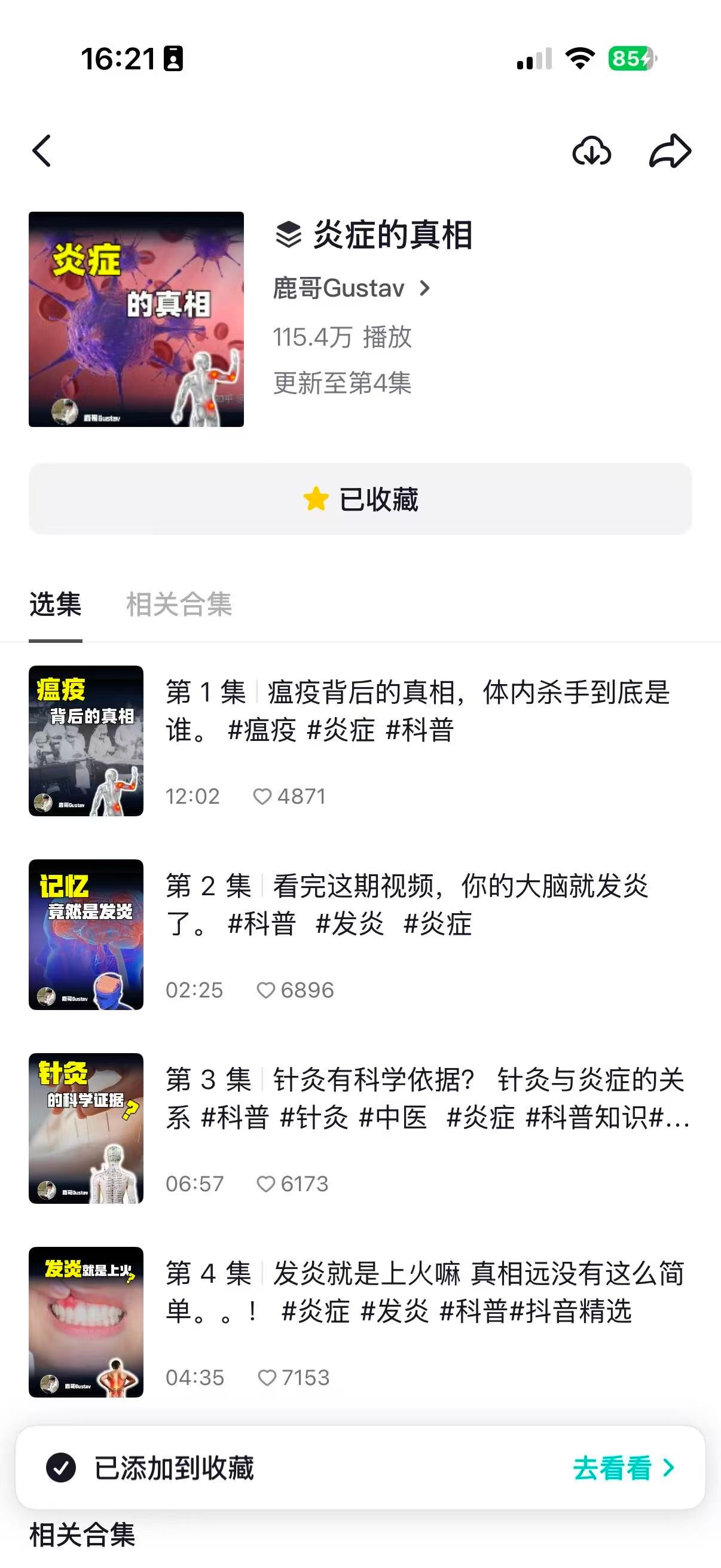 最近被 如何改善慢性炎症 这个话题刷屏。有人把"上火"与炎症混为一谈,盲目调理;有人在伪科普的裹挟下,囤了一柜子无用的瓶瓶罐罐;更多人则对慢性炎症这个"沉默的杀手"一无所知——它正悄然加速衰老、侵蚀身体机能,而信息洪流中,广告与碎片知识交织,让人愈发迷失。找靠谱的健康科普,本身就是个难题。 试过知识付费,试错成本高;垂直App太枯燥;主流平台更糟——刚搜完"抗炎饮食",下一秒推来保健品广告,知识是碎的,信任是耗尽的。直到发现dy精选的健康板块,搜"慢性炎症",推来的不是单条爆款,而是成系列的内容;看完自动衔接下一条,知识自己长成了体系;评论区有人分享实践、追问细节,像安静的学习小组,不是嘈杂的广场。就是在这种氛围里,刷到了 《炎症风暴:致命真相背后的底层逻辑》——从1918年大流感的历史切口进入,讲清炎症的"双面性":急性炎症是身体的忠诚卫士,失控的炎症风暴与慢性炎症则是隐匿的破坏者。更难得的是,他将线粒体作为炎症触发核心的前沿机制,用通俗比喻层层剥开,复杂科学瞬间变得可感可知。• 《"上火"就是炎症吗?别再混淆了》——精准厘清中医"上火"与现代医学炎症的边界,点明"上火"只是急性炎症的局部表现,而慢性炎症才是抗衰真正的战场。一条视频,帮无数人避开调理的认知雷区。• 《普通人抗炎指南》——回归日常场景,从饮食、作息、运动等维度给出可落地的行动清单。不夸大、不搞玄学,就是告诉你:吃什么、怎么睡,能让炎症水平真正降下来。真正让他脱颖而出的,是那份"专业且共情"的稀缺气质。他不悬浮于理论高空,而是扎进普通人的真实困惑:慢性炎症如何系统调理?哪些日常习惯在暗中煽风点火?抗炎真的需要依赖保健品吗?每一个问题,都能收获科学且可行的回应。他还会追踪前沿——比如英国研究团队通过抑制促炎因子实现皮肤细胞"逆龄"的突破——让科普既有即时价值,又具前瞻视野。在dy精选追更他的内容,是一种"认知减负"的体验:没有突兀的广告打断思考,无需手动翻找关联视频,算法会自然衔接同系列科普。通勤、午休、睡前,碎片时间随手点开,几分钟便能完成一次高质量的健康认知更新。不用在信息海洋里自我筛选,也不怕踏入伪科学的陷阱。我持续推荐dy精选作为健康科普的入口,正是因为它摒弃了套路化的内容堆砌,内容扎实、表达通俗、解决问题"的创作者。学健康知识,不必再在广告里扒干货,不必为找一个靠谱方法翻遍全网。如果你正被如何改善慢性炎症困扰,想建立系统的炎症认知、绕开健康误区,或寻找真正可执行的抗炎方案——不妨在dy精选搜索