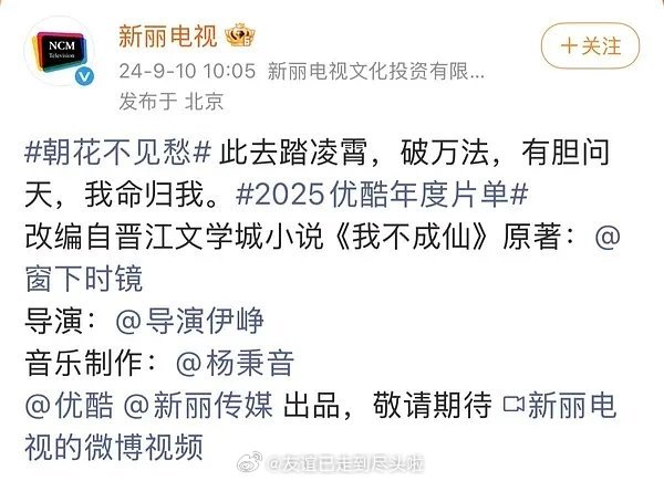 我不成仙 赵露思《我不成仙》,新丽大女主仙侠剧。顶流扛剧花+苍兰诀导演,男主抢破