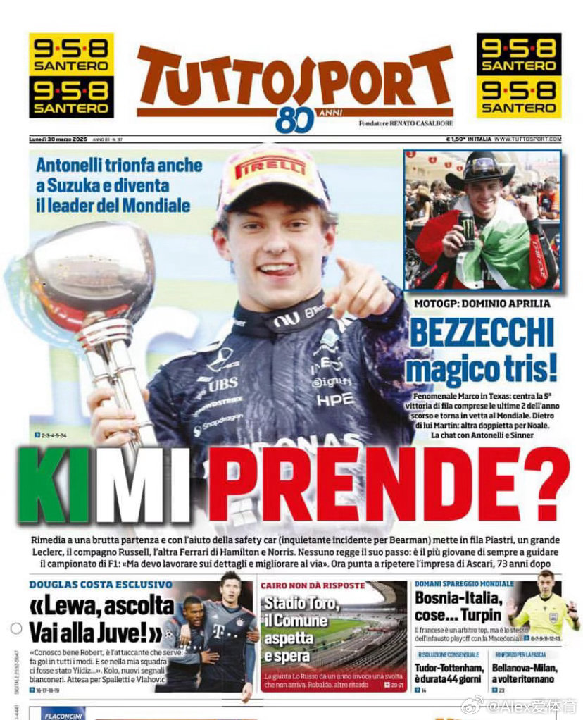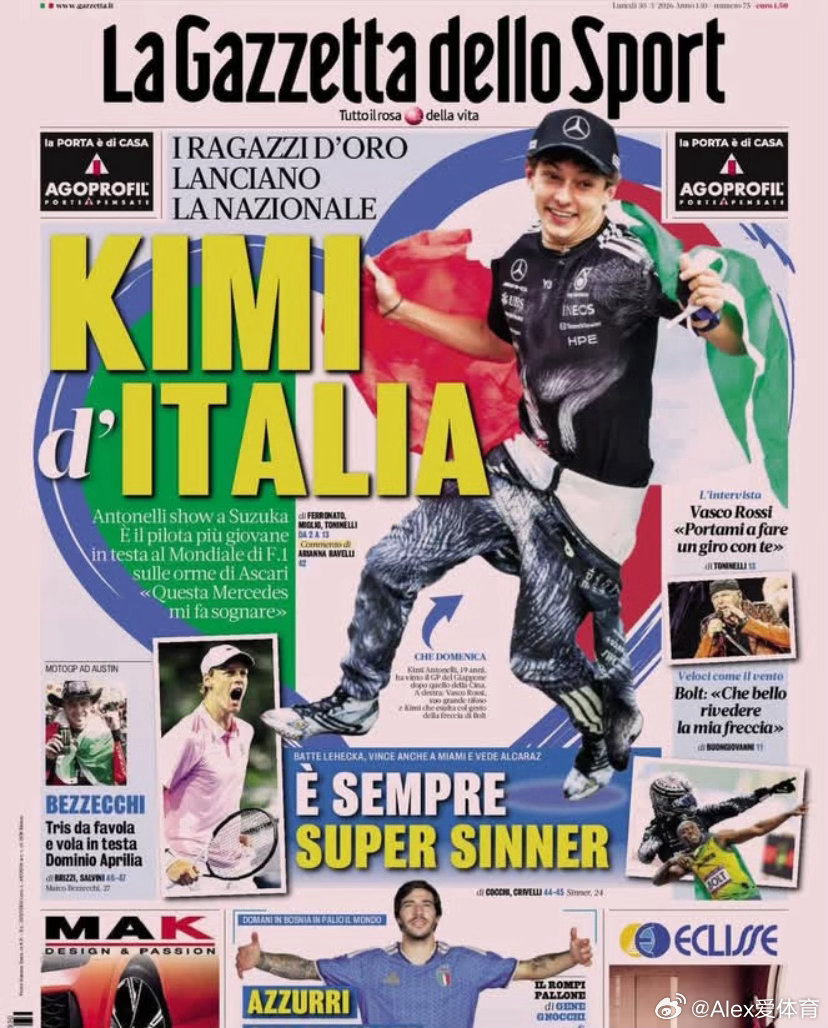 kimi日本站夺冠那天的意大利三大报排面拉满!辛纳也得靠边让一让kimi安东内利