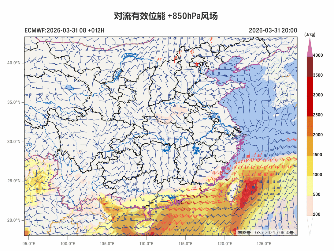 【强对流先减少再增多】今晚到明天,南方的对流会东移南压,总体减弱。但4月2日-3日,南方的对流再次增多增强。对应明天低空的北风南下,使得水汽和能量明显减少,后天南风再加强北上,水汽和能量再次增多。此外4月3日,山东河北天津等地也存在对流能量,冷空气前锋过境时也可能引发对流。