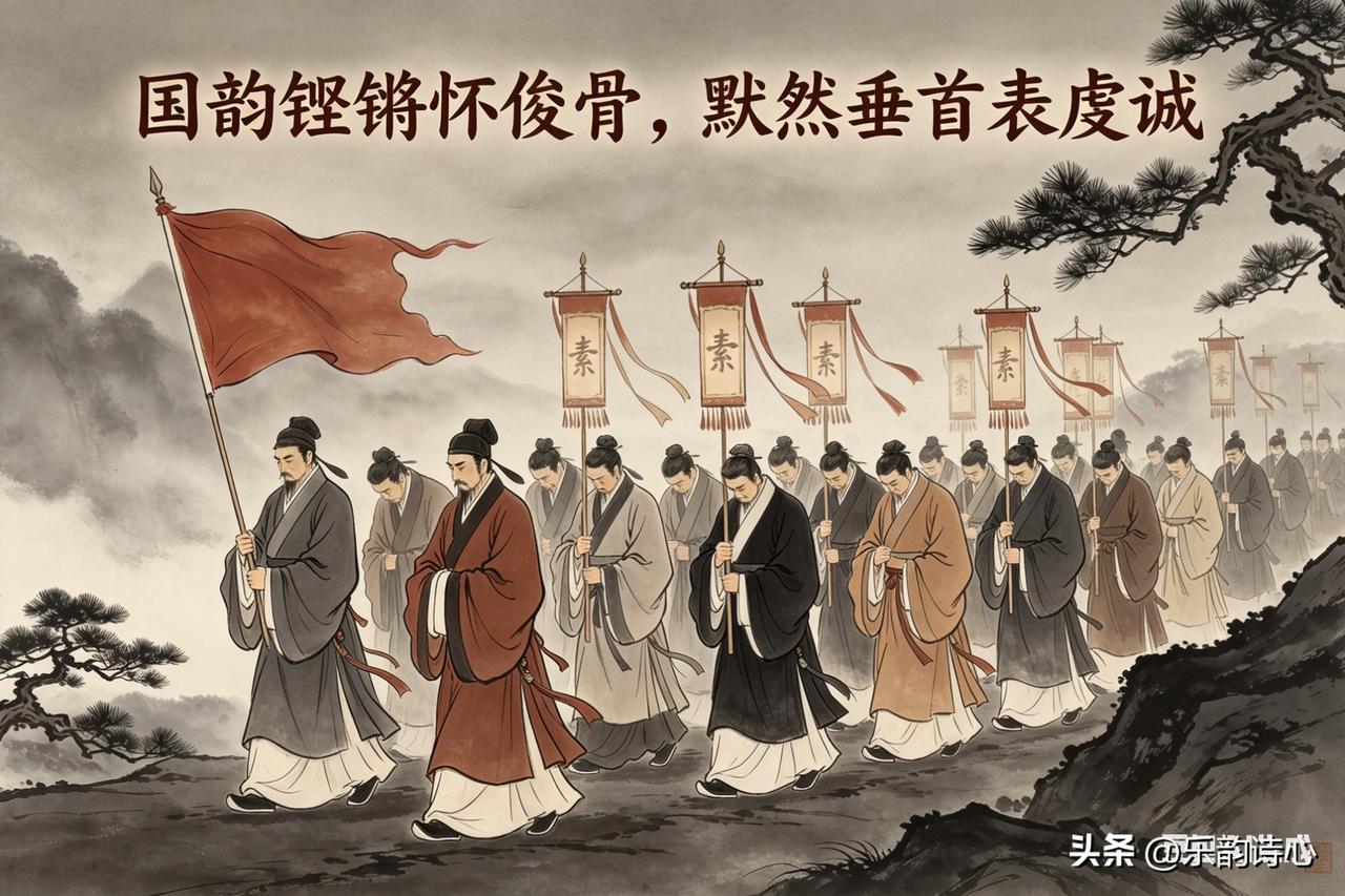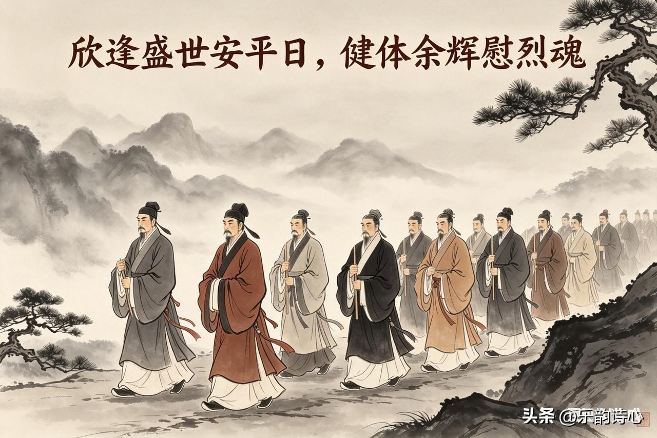 此诗描绘清明时节人们祭奠英烈之景。红旗引领,众人手持素幡缓步前行。八旬老人高擎红旗,满园松竹寄托深情。激昂国歌缅怀先烈风骨,人们默立表达虔诚。如今享受太平盛世,以强健体魄、发挥余热告慰英烈忠魂,尽显对英烈的崇敬与感恩。