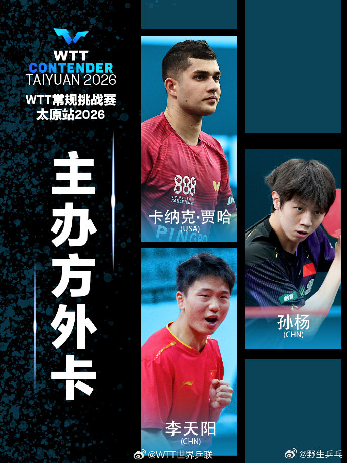 孙杨李天阳朱梓予获太原站外卡WTT常规挑战赛太原站2026将于4月7日至12日,