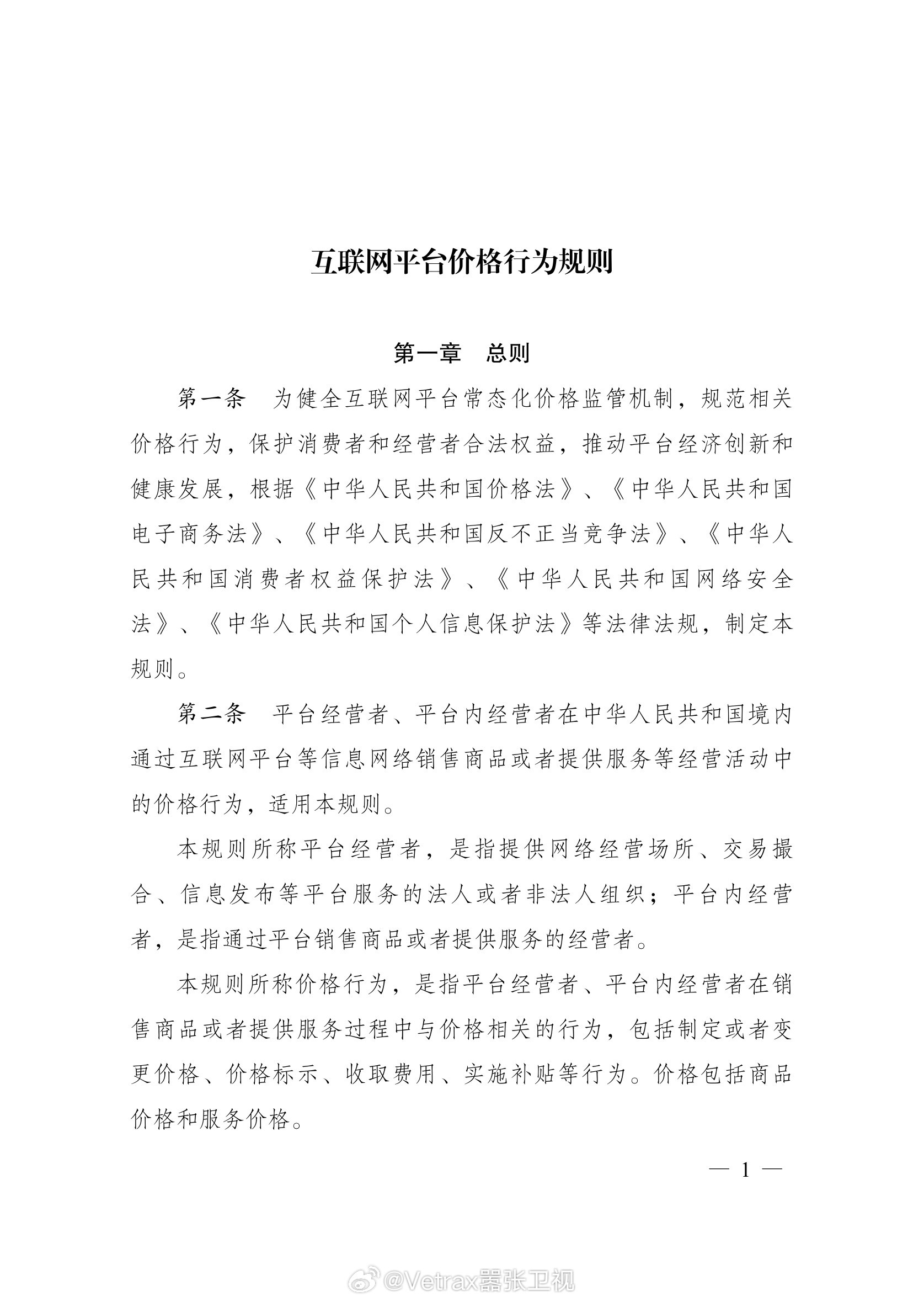 《互联网平台价格行为规则》自4月10日起施行