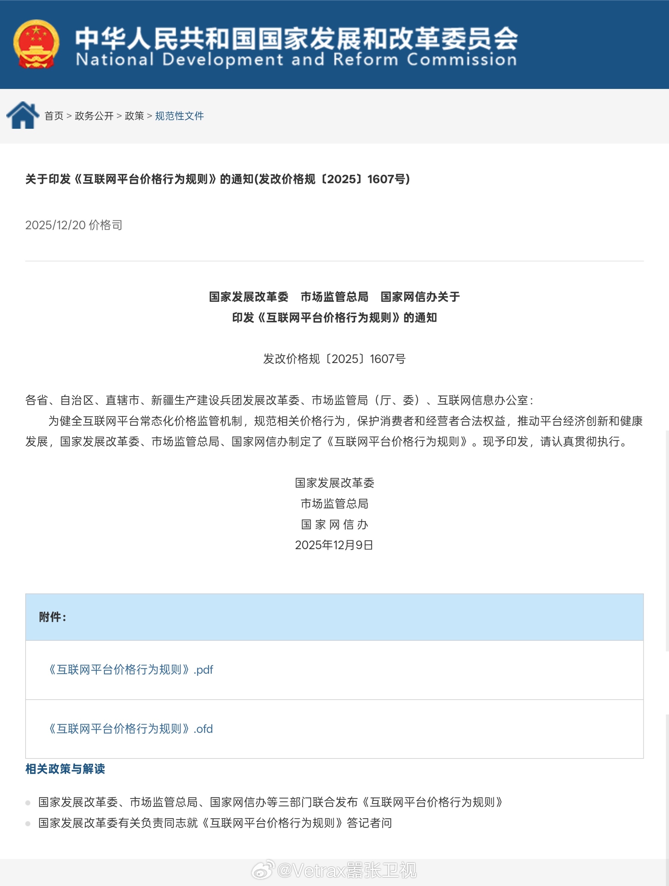 国家发展改革委、市场监管总局、国家网信办去年联合印发的《互联网平台价格行为规则》,将于 2026 年 4 月 10 日起施行,有效期为 5 年。