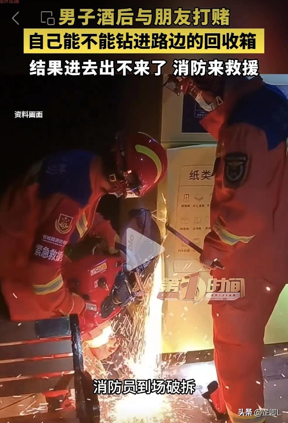 太尴尬了!宁波一男子酒后跟人打赌钻进智能回收箱,但是进去容易出来难,无奈求助消防破拆救人!尴尬又丢人! 喝酒误事真不是随便说说的,宁波这大哥直接把自己玩进回收箱,尴尬到抠脚! 3月30号晚上11点多,宁波高新区一男子跟朋友喝酒喝嗨了,吹牛皮不上税,还打上赌了,就赌男子能不能钻进路边的智能回收箱。 男子也是虎啊,还真敢上,二话不说就钻进去了,结果刚进去就傻眼了,不管怎么使劲都出不来,整个人卡在箱子里动弹不得。 更巧的是,这个智能回收箱有重量感应,超过了重量外面也打不开。 朋友在外面急得团团转,男子在里面急得百爪挠心,试了各种办法都开不了门,最后只能赶紧打119找消防。 消防员赶到一看,男子缩在回收箱小小的投放口里,喝得浑身酒气,说话都不利索,因为卡的时间太长,腿都麻了,根本没法自己爬出来。 消防员怕硬拉伤到他,赶紧拿工具破拆柜门,没几分钟就把柜门撬开,把人救了出来。 男子出来后又尴尬又后悔,不停跟消防员道谢,还直说以后再也不喝这么多酒,再也不打这种荒唐赌了。 真是让人哭笑不得! 喝酒千万别上头,更是别拿胡闹当好玩,不然到时候,受罪的是自己,还尴尬又丢人! 回收箱、狭小角落那可都不是玩的地方,一不小心就出事。真遇到危险赶紧报警,别自己瞎折腾! 素材来源:AHTV第一时间,侵联删!