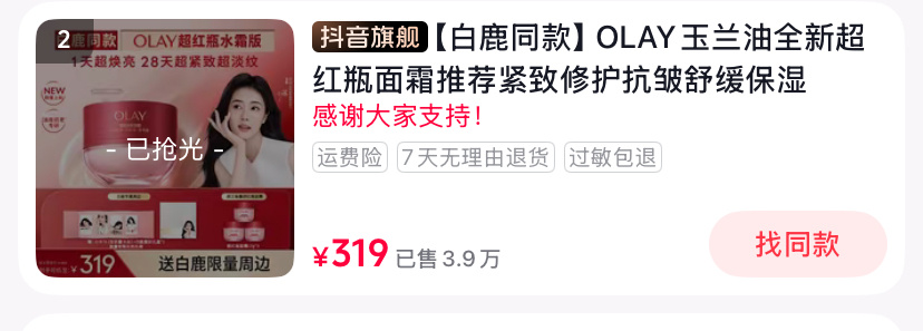 30/50ml的小白瓶单链超红瓶面霜都没货了白鹿olay大中华区代言人