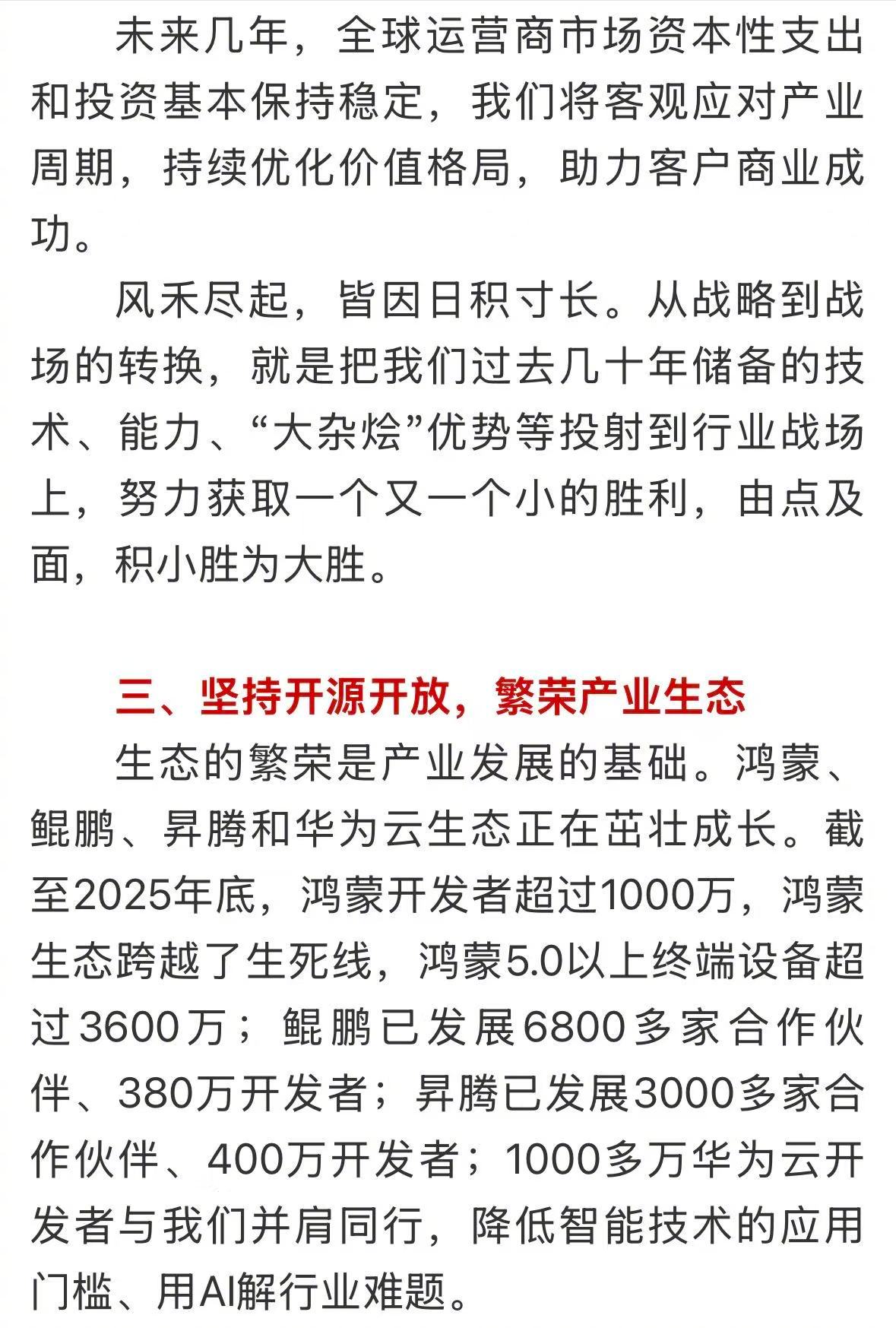 孟晚舟华为年报致辞谈战略聚焦今日,孟晚舟发表华为2025年年报致辞。她在讲话中强调:“战略蓝图,要在战场中接受检验”。华为致力于将技术、能力等优势投射到行业战场上,助力千行百业数字化、智能化发展。在制造领域,面向智慧工厂场景,华为提出“端-网-云-数”全新架构,获评“2025世界智能制造十大科技进展”。
