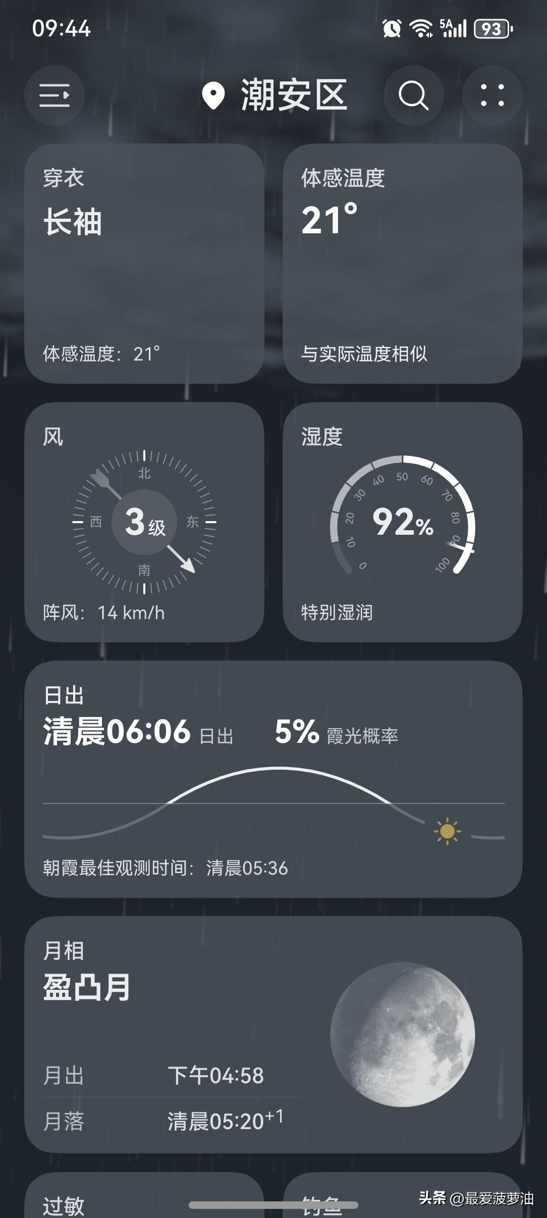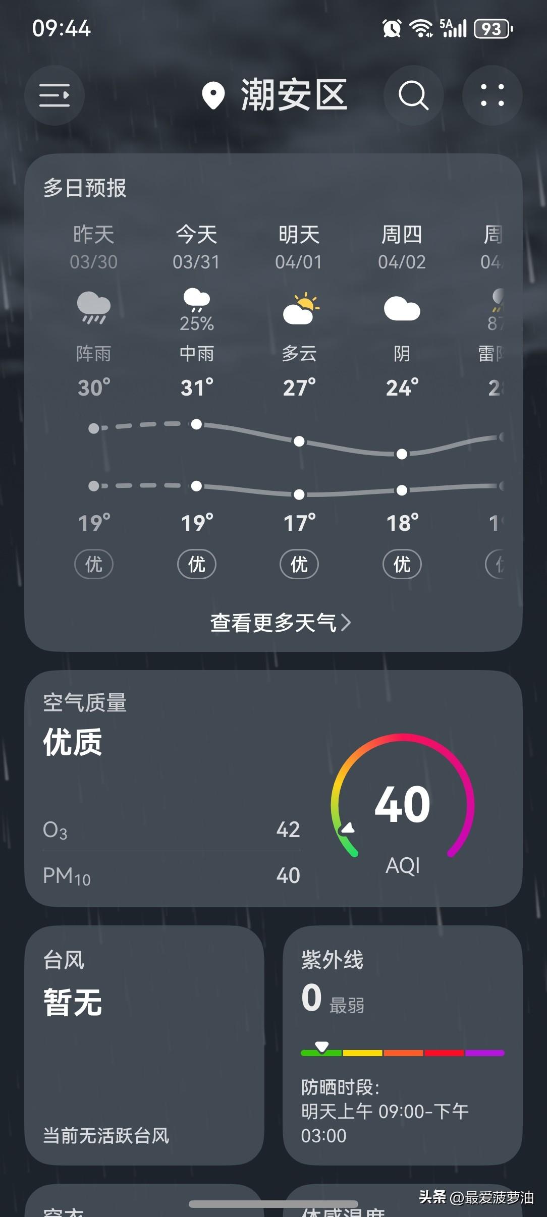 今天(31日),潮州有雷阵雨转中雨,气温19~31℃,此刻气温21℃,体感温度21℃。