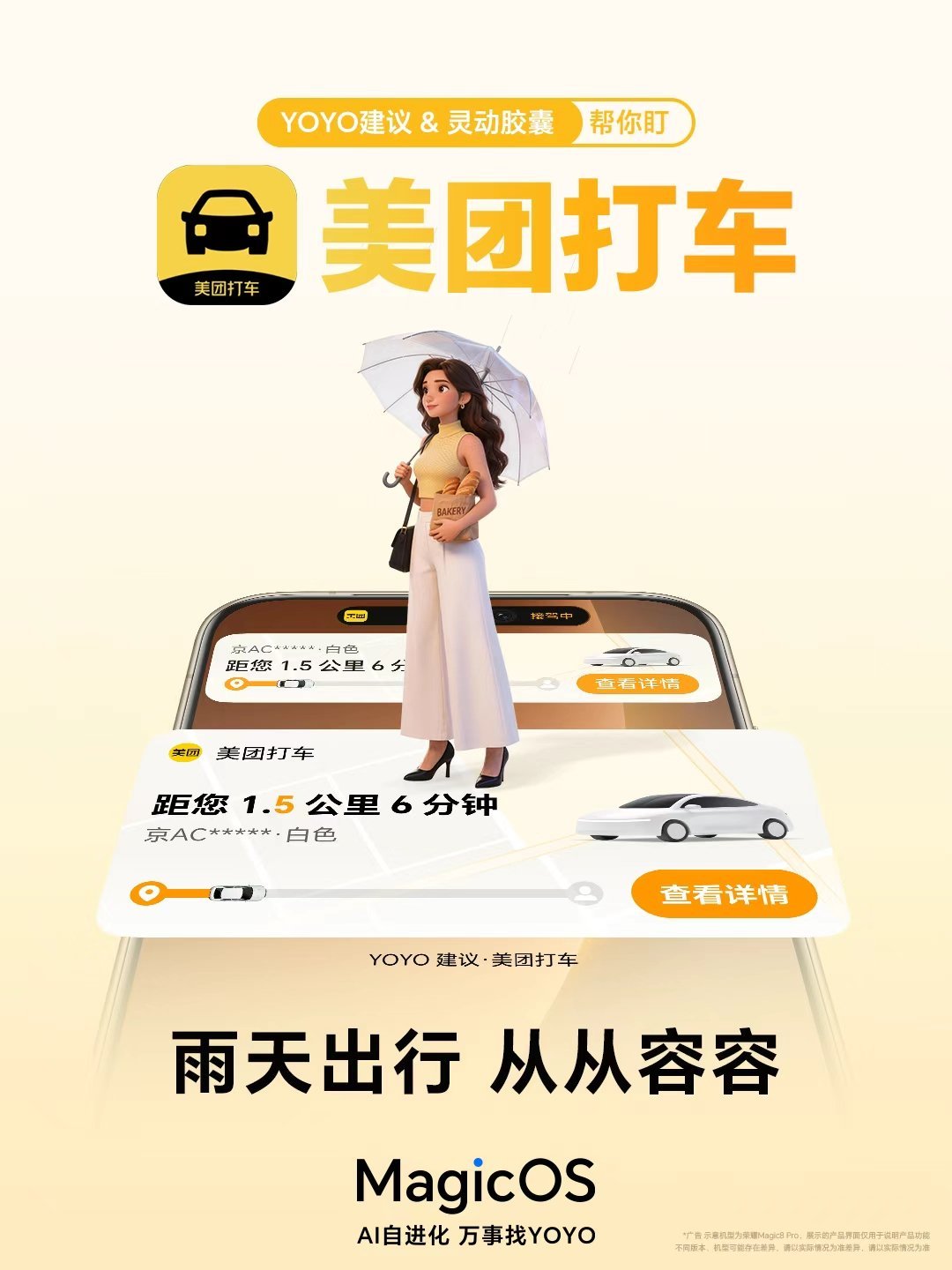 经常商务出差的兄弟,真的要吹爆MagicOS这波更新!滴滴企业版已经全面接入YOYO建议&灵动胶囊了,出差叫车不用再反复切APP盯进度,叫完车直接处理邮件、对接客户,司机接单、车辆实时位置、预计到达时间,全在灵动胶囊里一目了然。YOYO建议还会贴心提醒行程,赶高铁赶飞机完全不慌,商务出行效率直接拉满,这波生态拓展真的太懂职场人了!MagicOS10