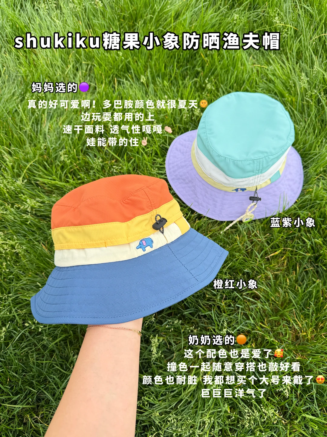 是他家新上的是橙红小象防晒渔夫帽和蓝莓橙子胸包