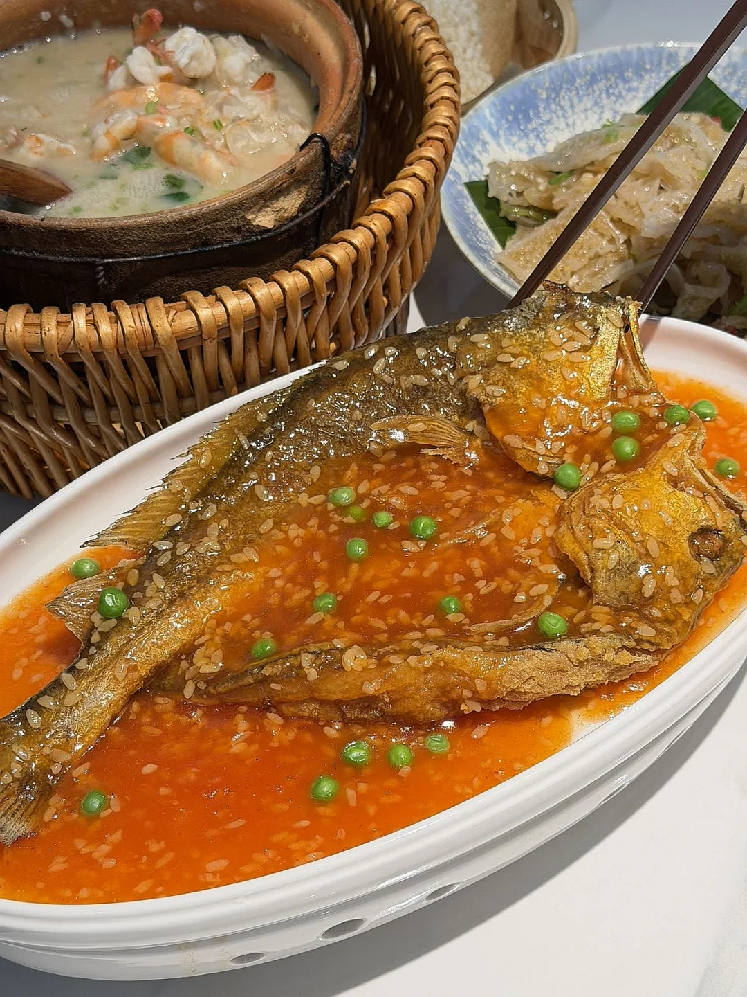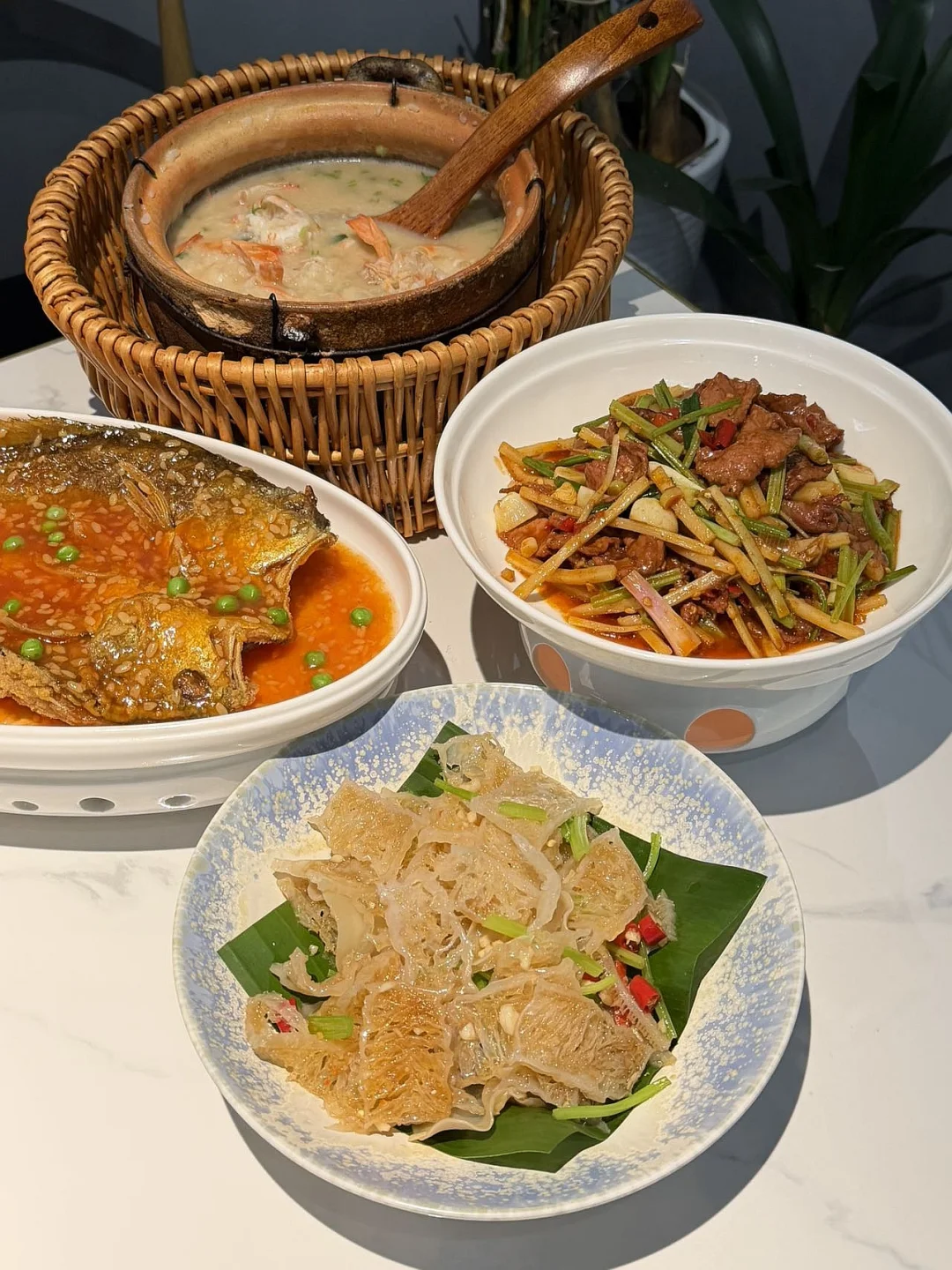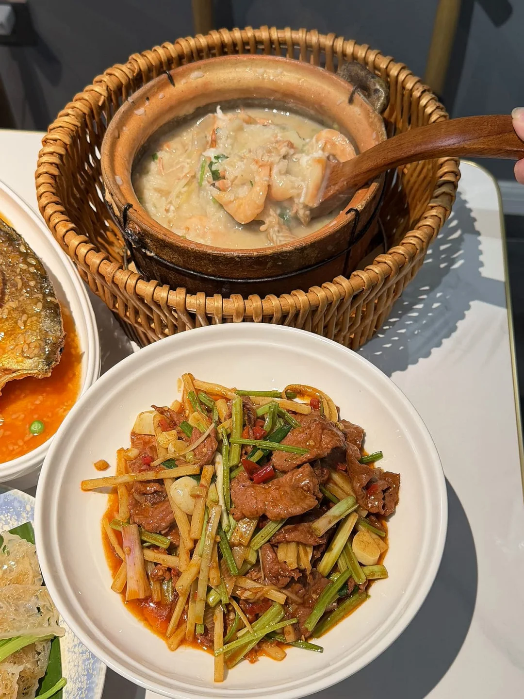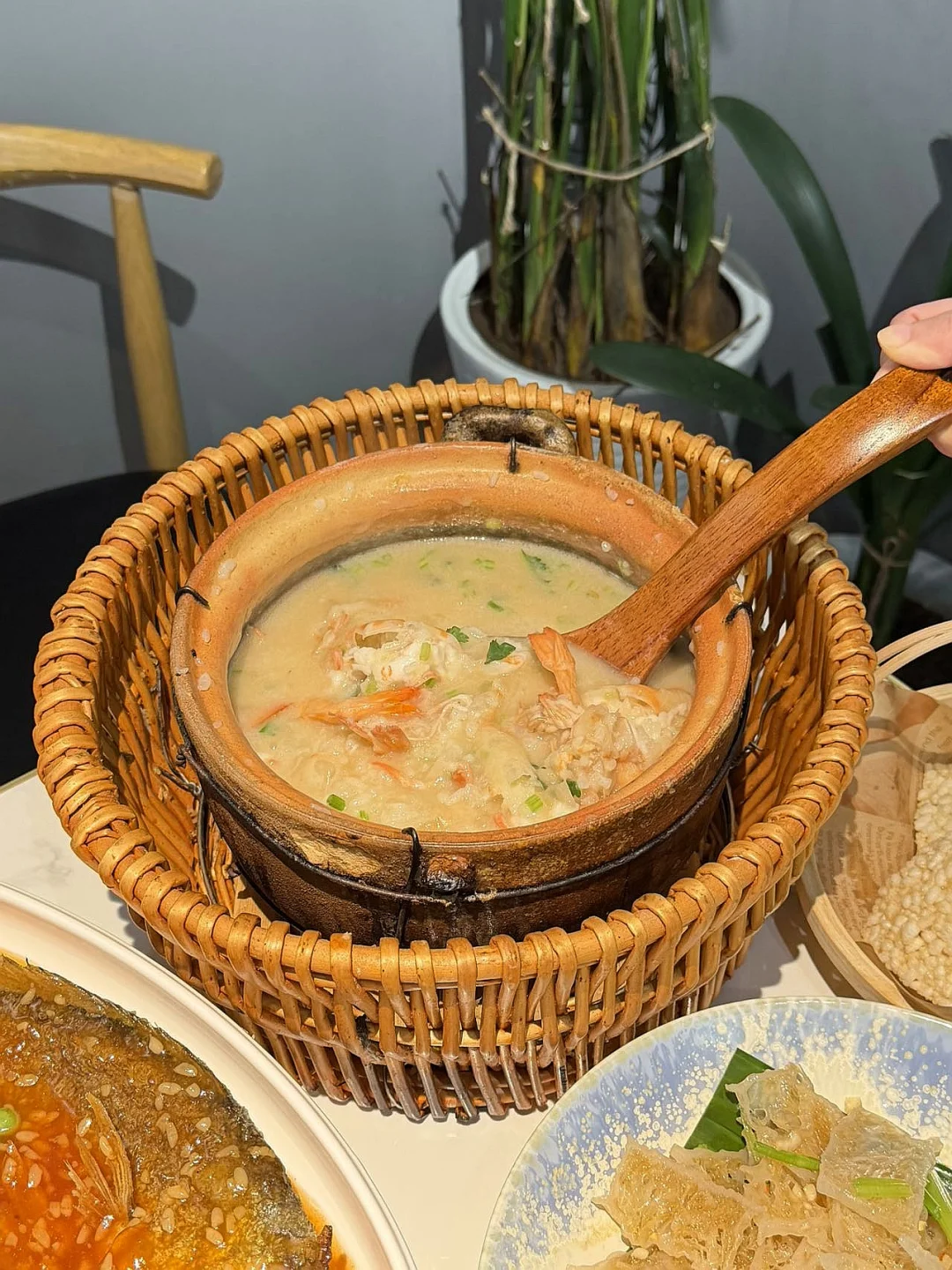 点了几个菜,🦀️ 鲜虾膏蟹干贝粥🐔 岁岁椒麻风干鸡🐟🍚 广西甜酒鱼道道都是硬菜!✌