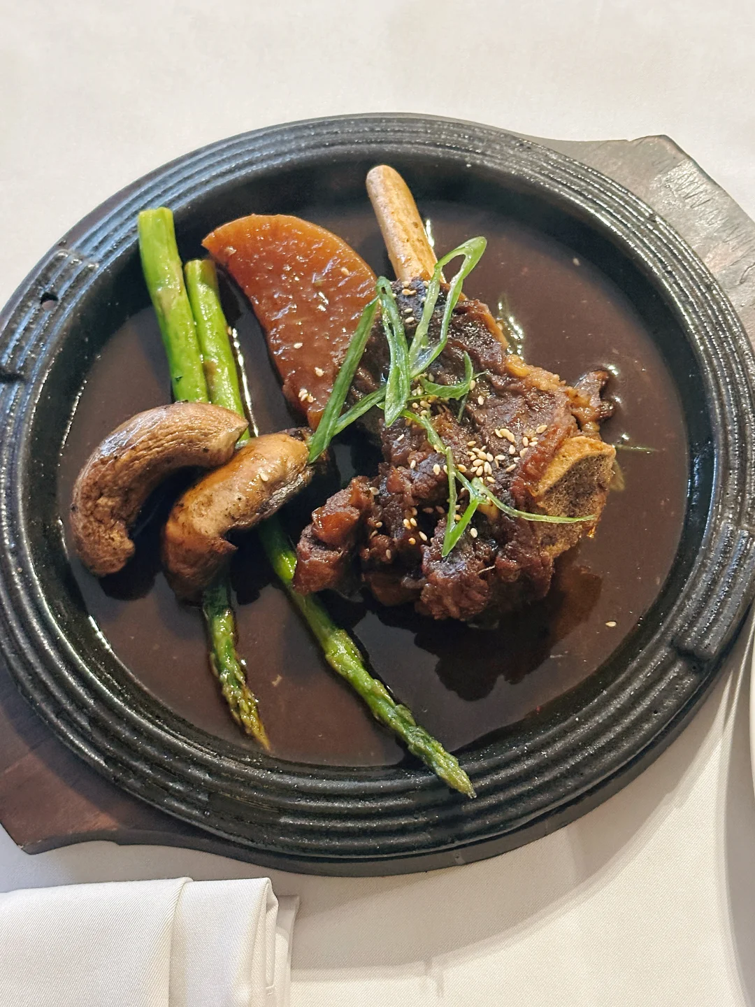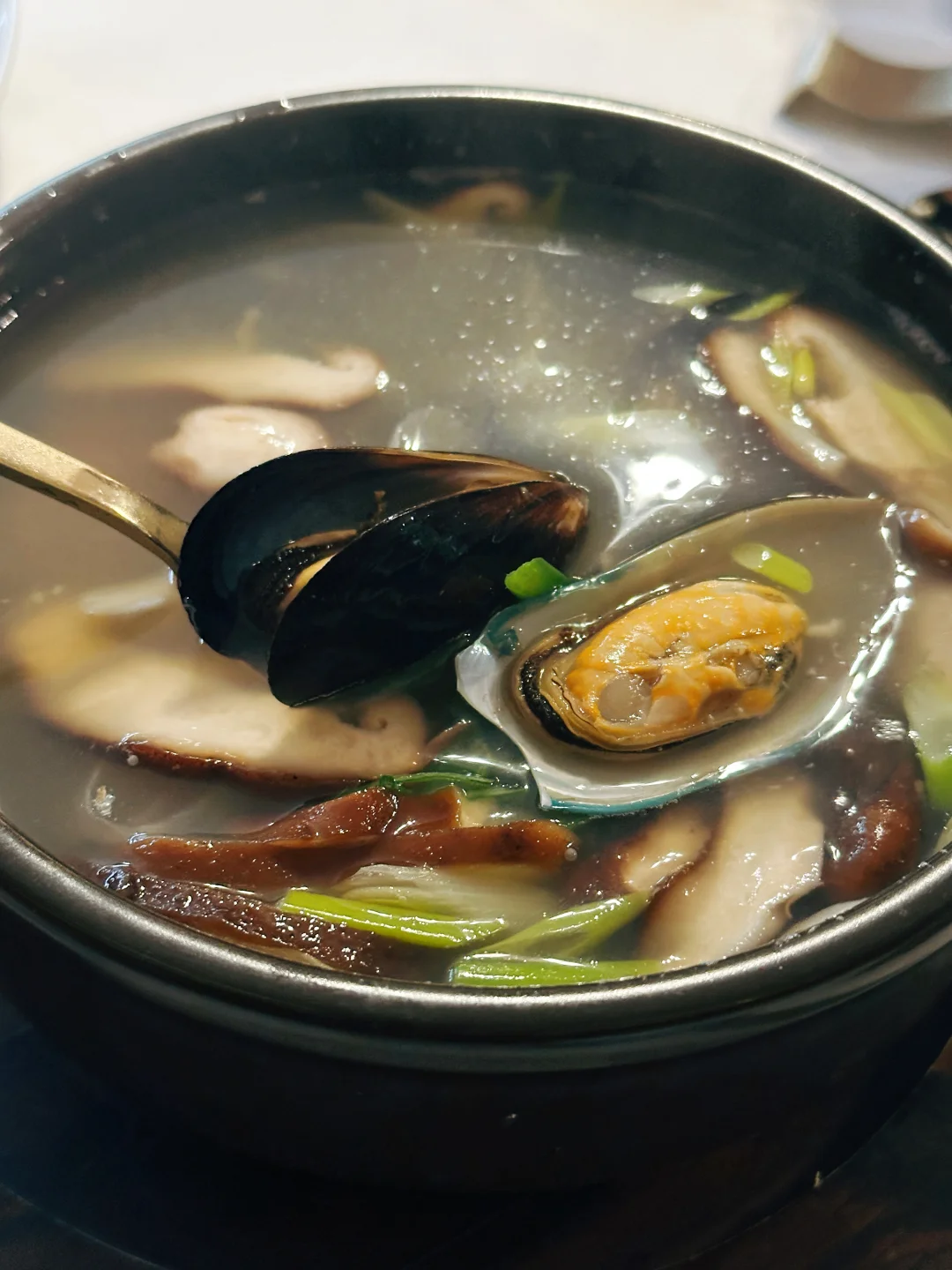 小菜数量很少,贻贝蛤蜊大葱汤倒是清鲜好吃,很难在本地菜馆吃到一口清澈的汤。