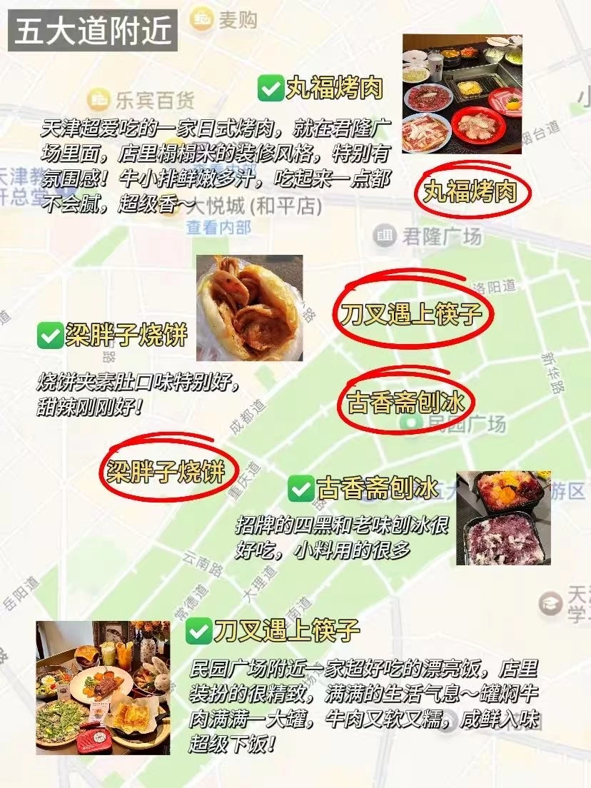 📍五大道:丸福烤肉、刀叉遇上筷子、粱胖子烧饼、古香斋刨冰