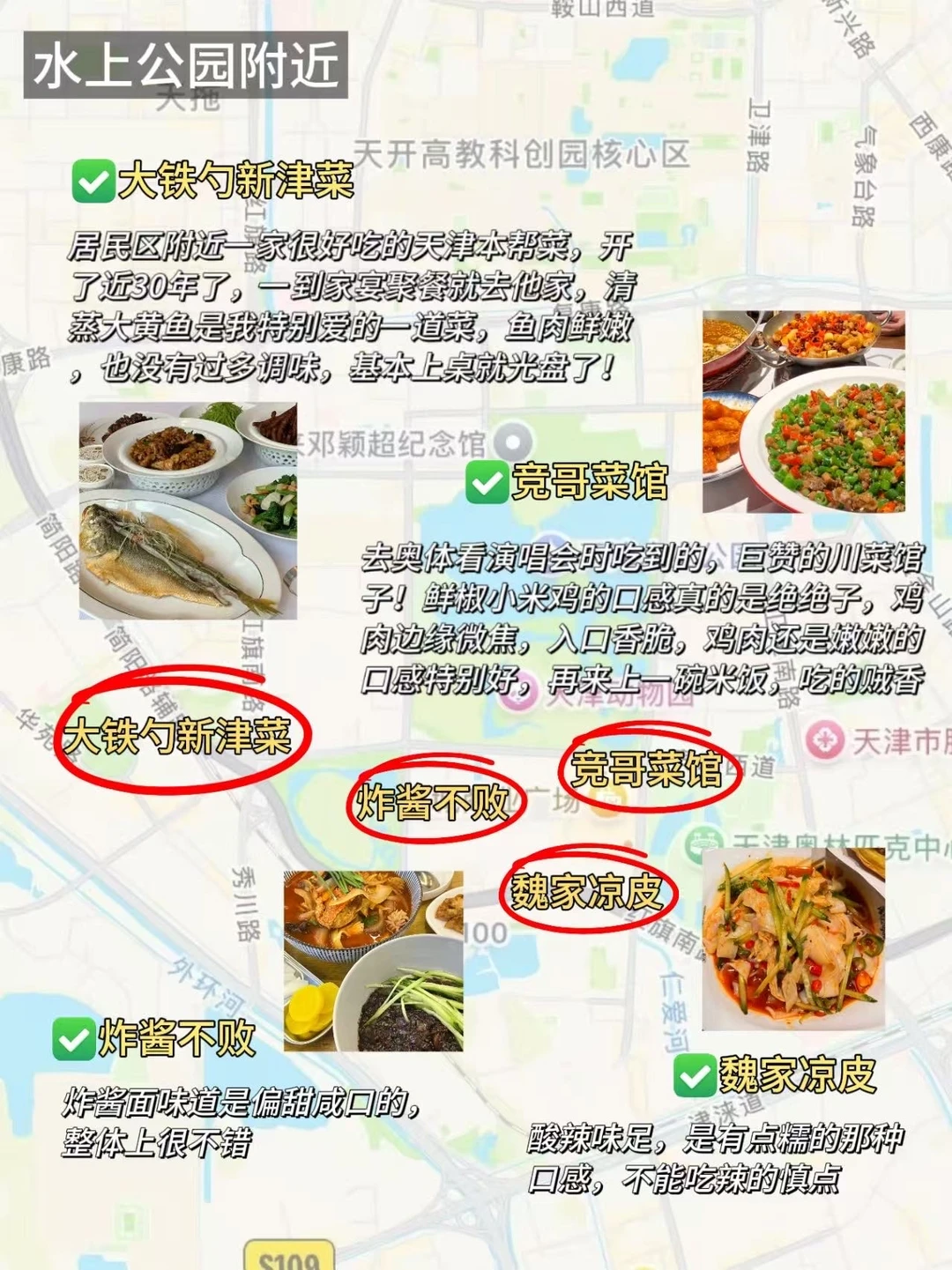 📍水上公园:大铁勺新津菜、竞哥菜馆、炸酱不败、魏家凉皮