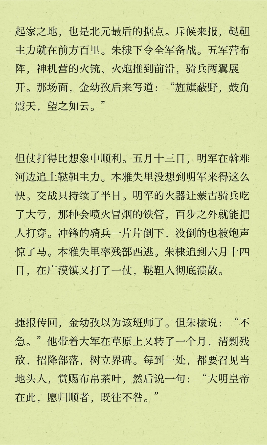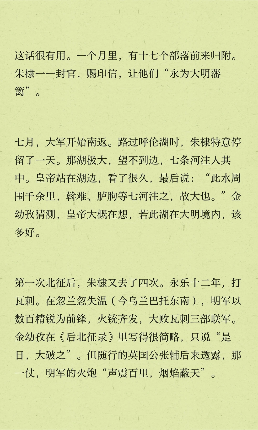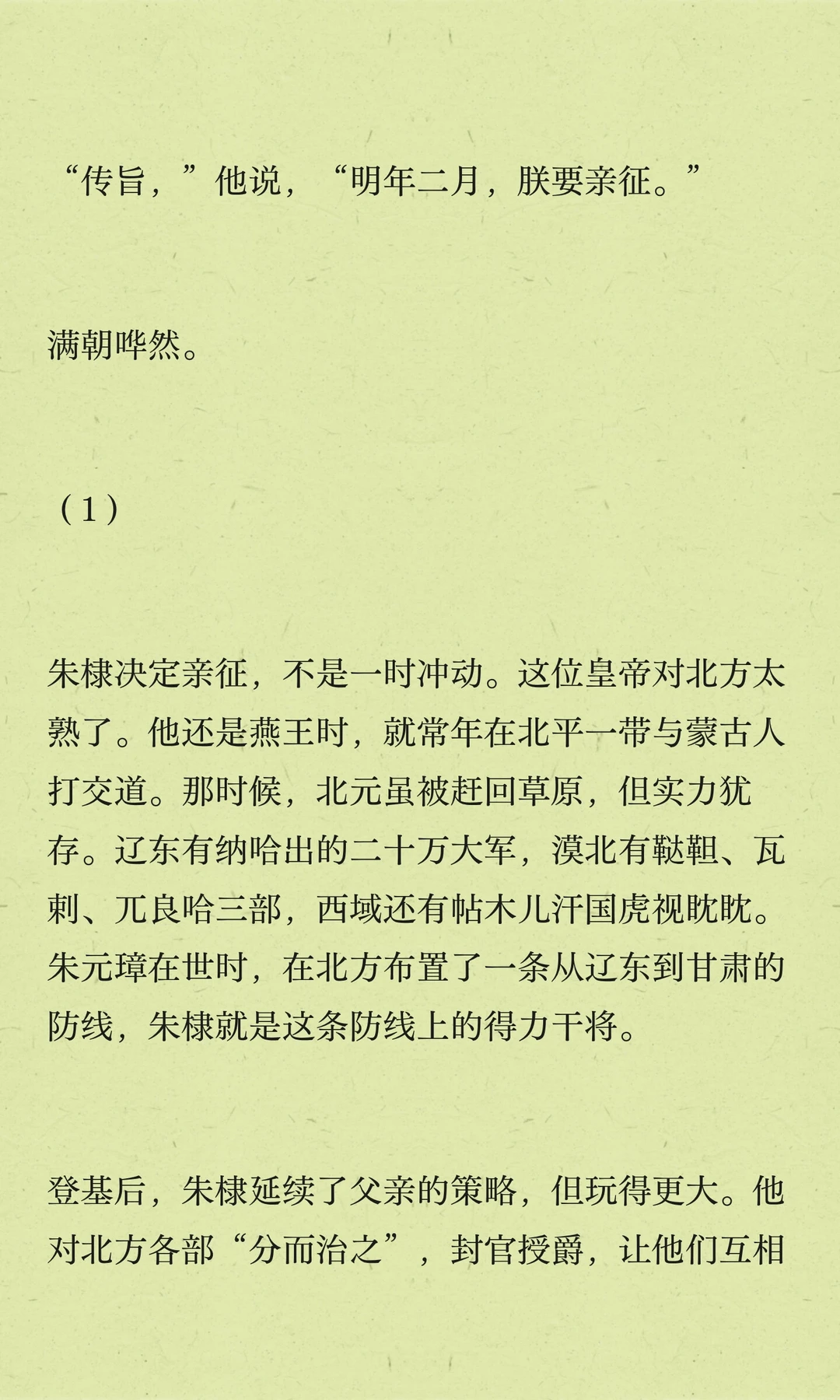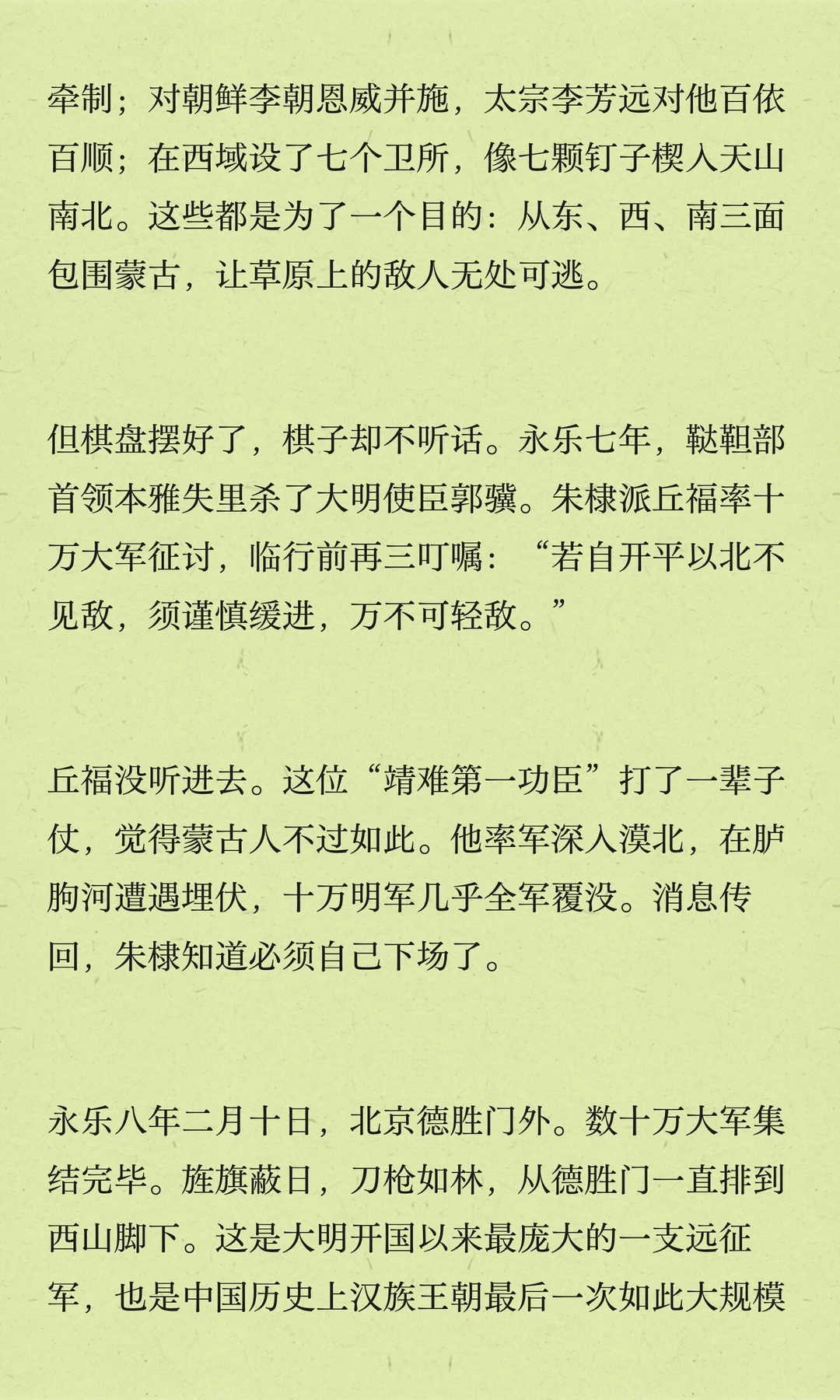 朱棣五次北征,巩固边防,树立大明威信。他深知长城以北是大明疆域,决心打破草原界限,展现大明实力。最后一次北征,他却未能再回。