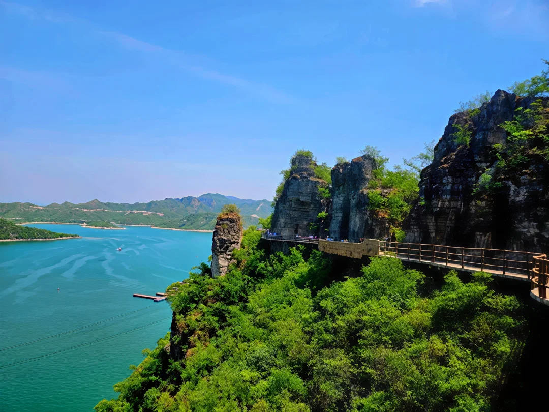 ✅ Day1:易水湖乘船游湖→登老子峰栈道(俯瞰翡翠湖水超治愈🌿)→傍晚逛太行水镇尝烤梨🍐