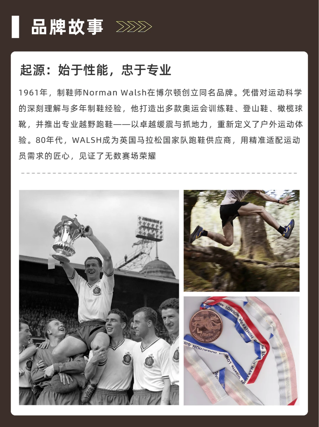 创始人Norman Walsh 14岁入行,曾在Reebok前身JW Foster学习制鞋,