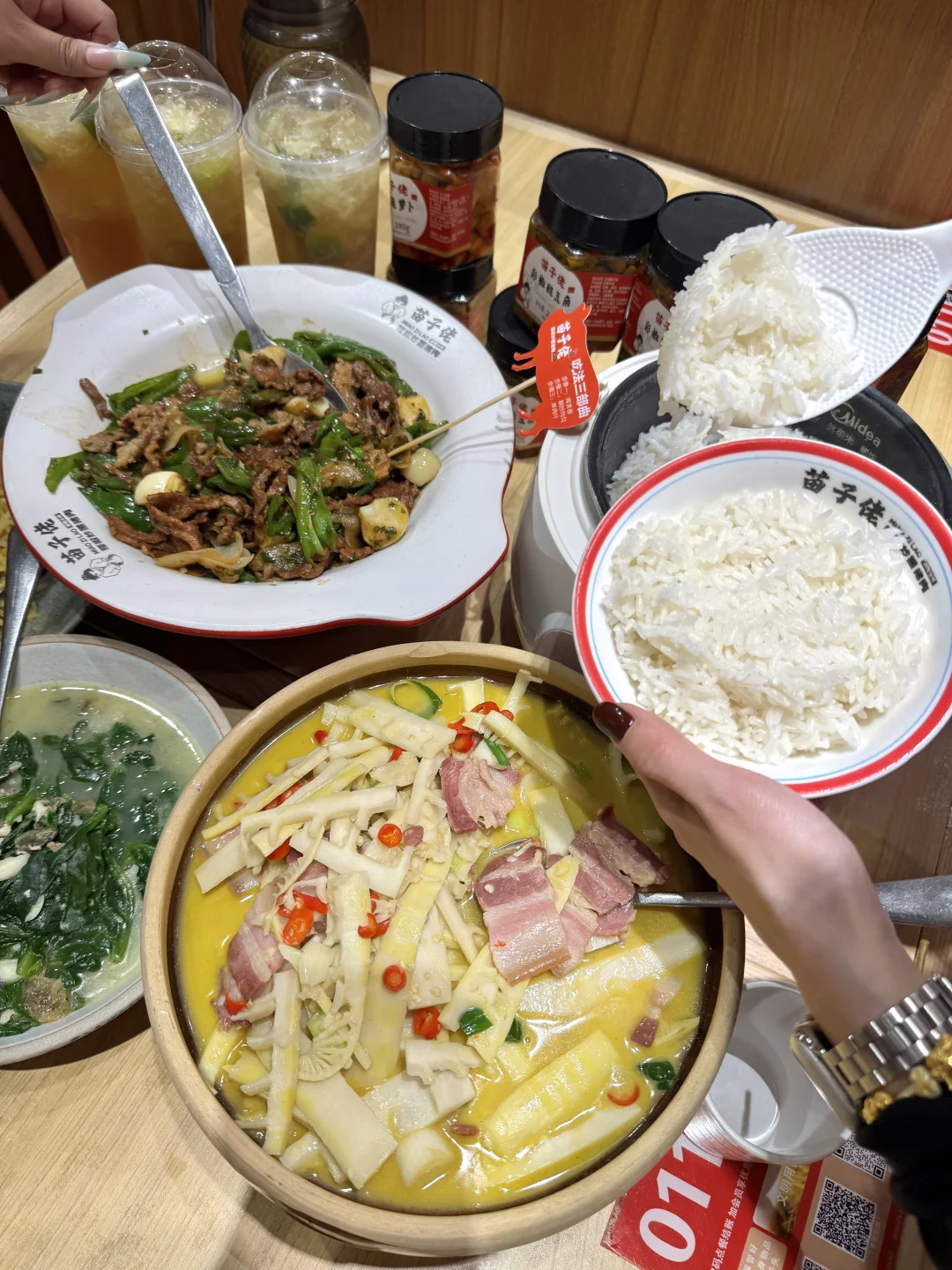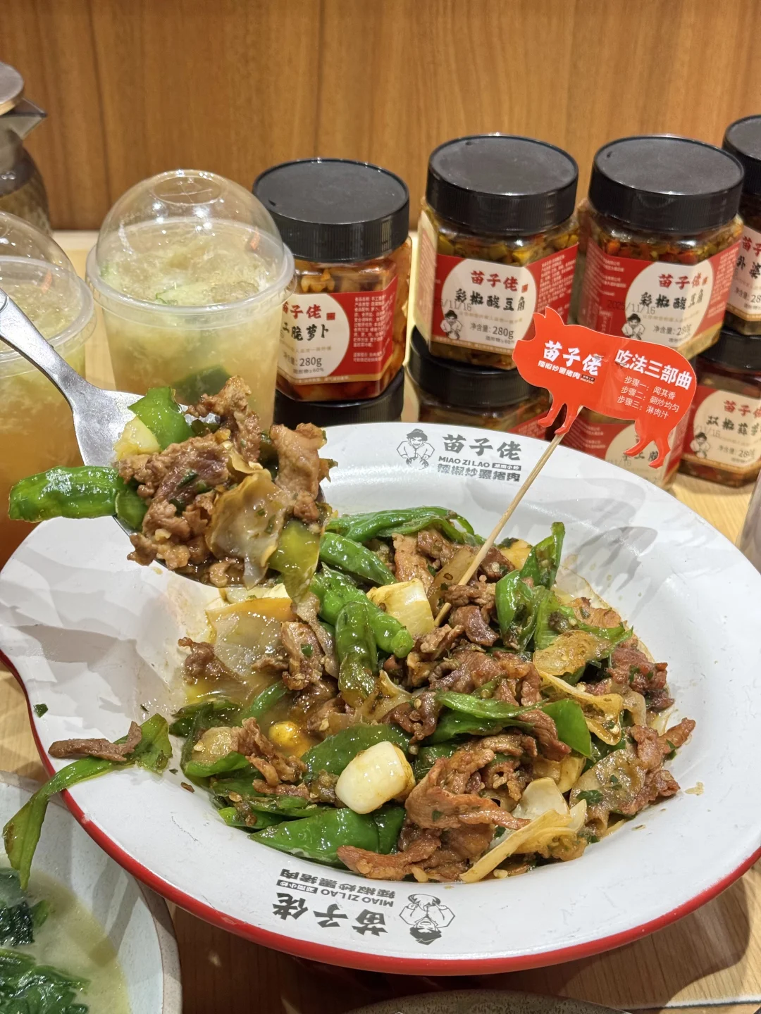 每次去苗子佬都忍不住库库三碗饭 好下饭! 他家又上了春季新菜品🌟米饭🆓 保定人都知道的湘菜馆儿 做湘西苗家土菜的苗子佬 ✔️经典菜 辣椒炒黑猪肉🌶️🌶️ 正确吃法:连汤带肉带菜一起拌米饭 谁懂菜汤拌饭有多香啊!!根本停不下来 尤其配上0r的米饭 绝了!一大锅米饭🍚畅吃!