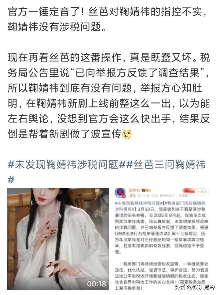 鞠婧祎没有偷税漏税,新华社、人民日报、央视新闻都报道了!想想也是,一个被前公司拿