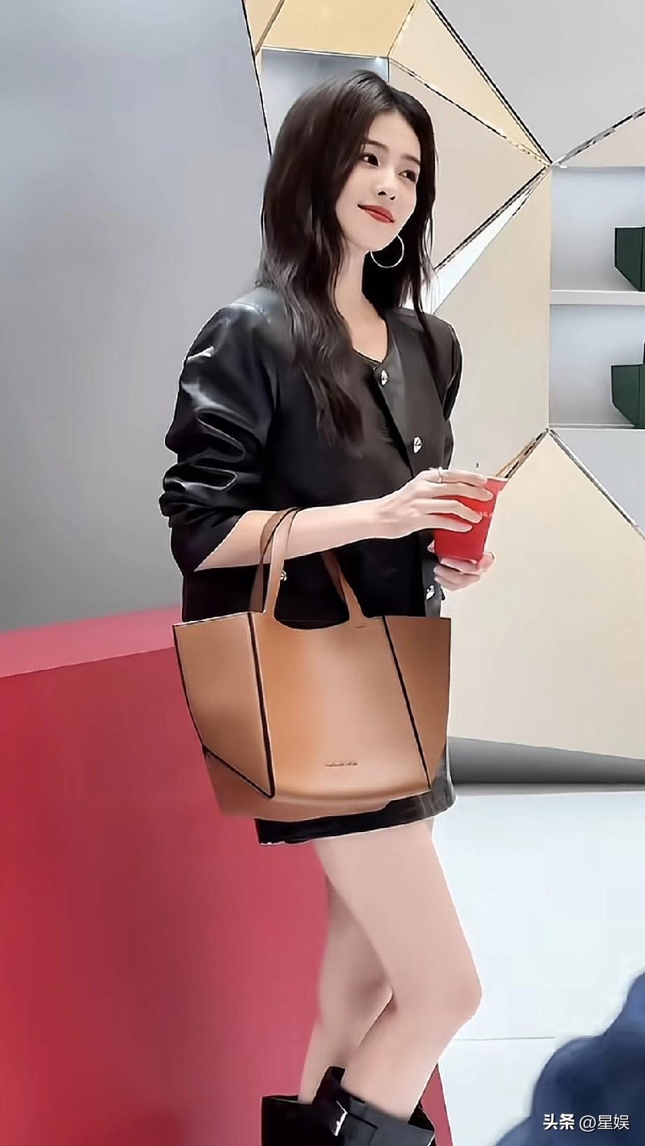 白鹿皮衣+短裙+大手袋