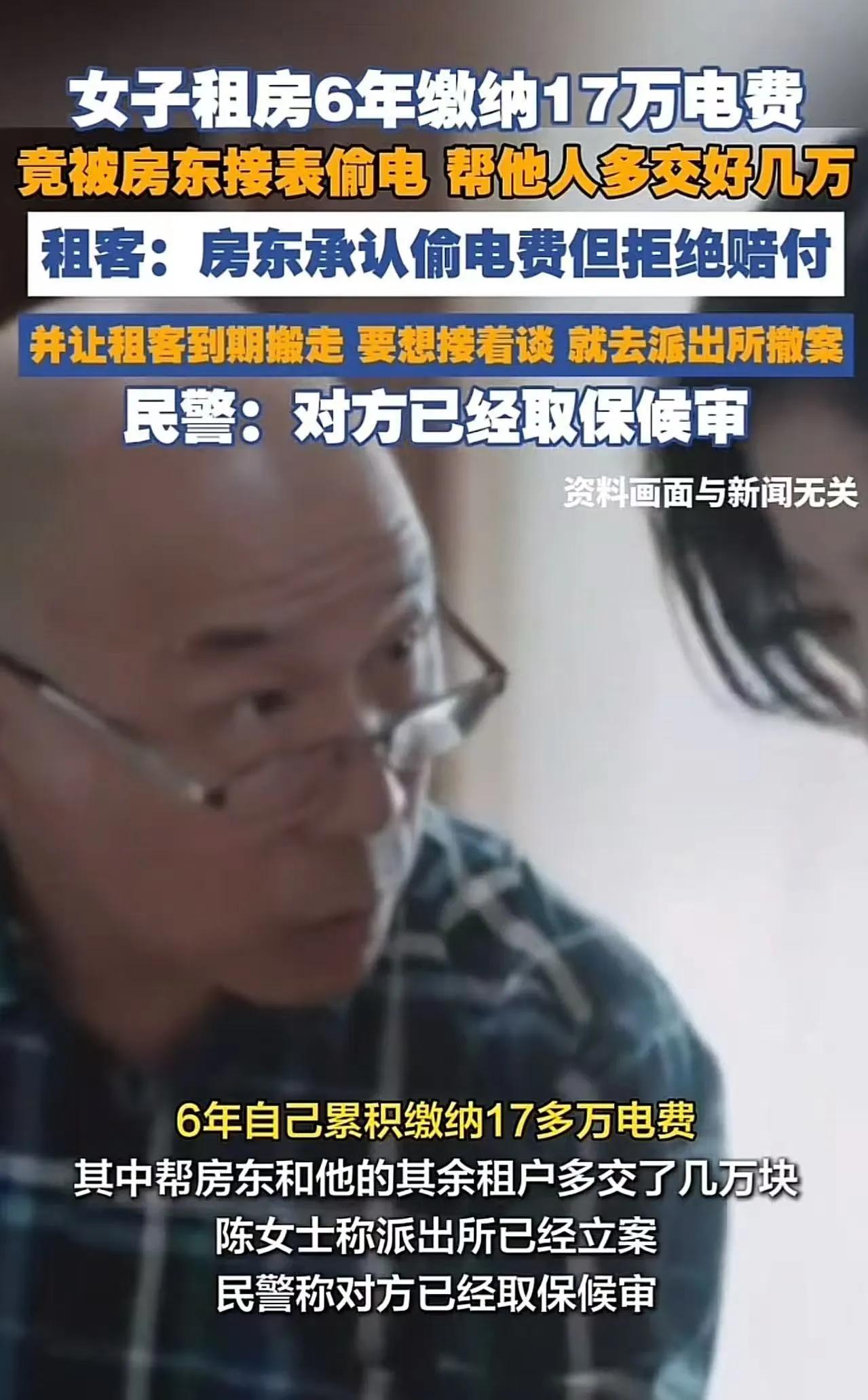 “房东偷电6年、租客交17万、当场认了还逼撤案,不撤就滚!”海宁这起事直接把人看炸,钱被偷、证据摆脸上、态度还横,三件事叠一起,已经不是无耻,是明着踩线。 陈女士在海宁开店,六年时间,电费17万多,设备用电、灯光广告、空调制冷,全算她账上,她一直以为是生意规模上来了,用电自然猛,没多想,也没怀疑,一直交,一直扛。 直到有一天,她关掉店里所有设备,电表还在转,还转得很稳,很持续,很不讲理,这种情况谁看都不对,她这才意识到问题不在“用电多”,在“有人在用”。 她找电工查线,线路一拆开,情况直接炸锅,房东把自己家电接进来了,还不止一户,又拉了两家租户过来,一块表拖三家,线路交叉、走向混乱、用电叠加、费用全压在她头上,这六年,她不是多交,是被系统性薅。 算账一开,问题更清楚,几万块不是波动,是被拿走,时间越长,金额越大,责任越清晰,这不是误差,是长期操作。 陈女士报警,警方介入,取证、比对、确认线路异常,房东面对证据只能承认,偷电这件事没法再赖,但一到赔偿,态度立刻翻,钱不给、条件先开、态度强硬,直接说要谈就撤案。 更狠的一句紧跟着砸下来,合同到期就让你走,不撤案就别想继续租,这句话不是气话,是计算过的压力点,店铺经营六年,客户沉淀在这,位置就是命脉,一搬就断流,他抓的就是这个。 这里有个关键点很多人没意识到,电不是“顺手用点”的东西,是计价资源,私接线路就是把别人付的钱转到自己头上,这种行为在法律上就是盗窃罪的典型形态,隐蔽、持续、以占有为目的,金额一旦达到标准,直接进刑责区间。 而且这类案件是公诉,不是当事人说撤就能撤,房东用“撤案换赔偿”来谈,本质是在拿非法行为继续施压,这一步已经不是耍赖,是继续加码风险。 这件事最刺眼的地方,不只是钱,是逻辑,他不是临时起意,是长期布局,接线、分流、持续用、持续转嫁,时间拖六年,金额滚几万,他赌的是你不查、不懂、不敢动。 很多做生意的人都有这个习惯,电表在那,账单来了就交,设备多了就觉得正常,忙起来谁去盯转速,结果一旦有人动手脚,你等于给别人打工还倒贴。 现实很直接,电表不查、线路不看、异常不问,就是给漏洞留空间,一年可能几千,六年就是几万,等你发现,已经被绑定在位置上,想走走不了,想追钱成本更高。 房东这套操作,说白了就是两步,先偷,再压,偷的时候靠隐蔽,压的时候靠你舍不得,这种逻辑一旦成立,就会有人反复用。 但问题在于,法律不看你“有没有算计成功”,只看你行为本身,偷就是偷,时间越长,证据越完整,金额越大,后果越重。 一句话讲透,这种钱拿着不稳,拿得越久,摊得越开,最后要付的代价越高。