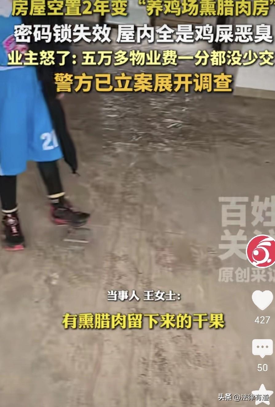 “我家成了别人的养鸡场”:湖南女子空置房遭闯入,满屋鸡粪腊肉香,谁该为此买单? 两年没回的家,推开门的那一刻,迎接她的不是久违的熟悉感,而是一股直冲天灵盖的恶臭——鸡粪味、腊肉烟熏味,还有满地的碎柴火和干果壳。密码锁形同虚设,一推就开。这哪还是自己的家,分明是陌生人的“养鸡场”和“熏腊肉作坊”。 3月30日,湖南怀化的王女士来到她位于碧桂园十里江湾花园的一套房屋,空置了近两年。这次回来一看,彻底傻了眼。 房门倒是没被撬过的痕迹,但密码锁早已失效,“一推就能开”。走进屋,刺鼻的臭味扑面而来,地上随处可见鸡毛和鸡屎,还有熏腊肉留下的干果壳、碎柴火。显然,有人把这里当成了自己的“养殖场”和“加工作坊”。 王女士第一时间想到了物业,五万的物业费一分不少,结果自己的房子成了这样。让她没想到的是,物业在未与她充分沟通的情况下,直接将屋内的残留垃圾清扫干净。这一操作让她更加愤怒——“证据都没了,我还怎么查是谁干的?” 对此,碧桂园十里江湾花园的物业管家回应称,清理前已当面告知业主,并非擅自行为。同时,物业表示正在排查可疑人员。 目前,王女士已向辖区派出所报案。 @法律有道 一、这件事的疑点不少。王女士称,房屋虽然装有密码锁,但“一推就能开”——这意味着门锁早已失去防盗功能。那么问题来了: 1、物业有没有发现门锁坏了? 这两年物业巡逻时是否注意到这户的门锁异常?如果发现却未告知业主,是否存在失职? 2、到底是谁闯入了房屋? 能“常驻”养鸡熏腊肉,说明闯入者对该房屋相当熟悉,甚至可能多次进出。物业的监控是否拍到了可疑人员? 3、物业擅自清理现场,是否合理? 王女士发现问题后,第一反应肯定是保留证据。物业却在她报警前就清理了垃圾,这对后续追查责任人造成了实质性影响。 物业管家声称“已当面告知”,但如果王女士不同意清理,物业是否有权强行处理?这是争议焦点之一。 二、私闯民宅、物业责任、证据保全,一个都不能少。 这起看似“奇葩”的纠纷,涉及多个法律问题,值得逐层拆解。 首先是非法侵入住宅:可能构成刑事犯罪。 根据《中华人民共和国刑法》第二百四十五条,非法搜查他人身体、住宅,或者非法侵入他人住宅的,处三年以下有期徒刑或者拘役。司法工作人员滥用职权,犯前款罪的,从重处罚。 闯入王女士房屋的人,未经允许擅自进入并占用他人住宅,用于养鸡、熏腊肉,已经涉嫌构成非法侵入住宅罪。即便未造成财物损毁,这一行为本身就已触犯刑法。王女士报警是正确的选择,公安机关应当立案调查。 其次,是物业的安保义务与责任边界。 根据《民法典》第九百四十二条,物业服务人应当按照约定和物业的使用性质,妥善维修、养护、清洁、绿化和经营管理物业服务区域内的业主共有部分,维护物业服务区域内的基本秩序,采取合理措施保护业主的人身、财产安全。 王女士的房屋空置两年,但物业费未停缴。物业对空置房的巡查义务并未免除。如果门锁早已失效,物业在日常巡逻中应当能够发现异常却未发现,或者发现了却未通知业主,则属于未尽到合理的安全保障义务,应当承担相应的违约或侵权责任。 再次,是物业擅自清理现场:可能破坏证据、加重责任。 王女士发现房屋被侵占后,现场本身就是重要的证据——谁留下的鸡粪、腊肉残渣,可能包含指纹、DNA等线索。物业在未征得业主明确同意、且业主尚未报警取证的情况下,擅自清理现场,客观上可能妨碍了公安机关的调查取证。 即便物业管家称“已当面告知”,如果王女士未明确同意清理,物业的行为仍可能构成对证据的破坏。根据《民法典》第一千一百六十五条,行为人因过错侵害他人民事权益造成损害的,应当承担侵权责任。如果因清理行为导致无法查明闯入者、无法追责,物业可能需要对王女士的损失承担补充赔偿责任。 最后,是业主如何维权。 针对王女士的情况,法律上可以采取以下路径: 一是刑事报案:要求公安机关以非法侵入住宅罪立案调查,调取小区监控、排查可疑人员。 二是民事索赔:向闯入者主张房屋清洁费、消毒费、门锁更换费,以及精神损害抚慰金。如无法查明闯入者,可依据物业服务合同向物业主张未尽安保义务的违约责任。 目前警方已经介入调查,希望尽快查明闯入者,给王女士一个交代。也希望这件事能给所有空置房的业主提个醒——房子空着,不代表风险也空了。多一分警惕,少一分糟心。 你身边有过空置房被他人占用的经历吗?欢迎在评论区分享你的看法。