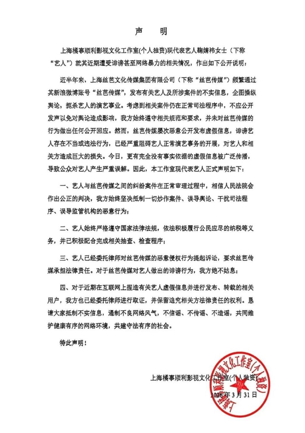 官方已澄清!鞠婧祎税务清白,这场闹剧该停了! 🔥 3月30日,前经纪公司丝芭传媒突然实名举报鞠婧祎偷税漏税,称其2024年申报收入1100万,实际却超5000万,瞒报近88%,瞬间引爆热搜! 💥 时间点太蹊跷!恰恰选在鞠婧祎新剧《月鳞绮纪》定档前一天,明摆着是要搅黄艺人工作,恶意满满! ✅ 但反转来得太快!3月31日晚,上海税务局官方通报直接打脸: 自2025年9月起,多次核查鞠婧祎涉税问题,未发现任何违法问题! 这次举报是重复检举、无新线索,依法不予受理! ✊ 鞠婧祎工作室也硬气回应: 艺人一直依法纳税,积极配合所有税务检查! 前公司借合约纠纷,反复造谣诽谤、操控舆论,就是想毁掉她的事业,已提起诉讼维权,绝不姑息! ❌ 更可笑的是,丝芭前脚刚举报,后脚又发声明否认,自相矛盾,彻底暴露心虚! 所谓“税务瓜”,根本就是前东家的恶意报复、舆论构陷! 官方结论已出,鞠婧祎清清白白! 别再被带节奏,支持姐姐用法律维权,期待新剧顺利播出!💪 鞠婧祎 鞠婧祎税务清白 丝芭传媒 明星税务