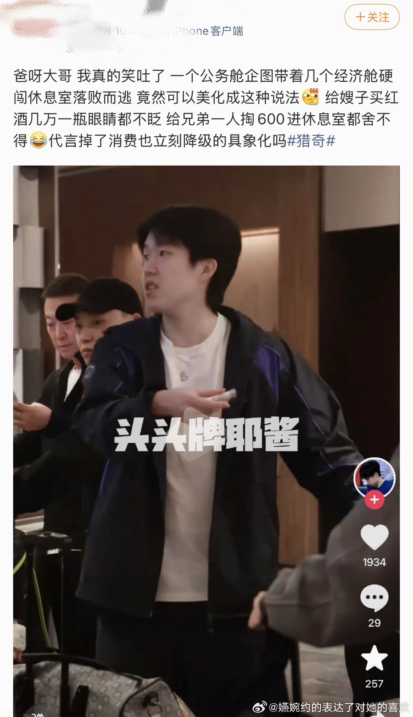 继带一个公务舱带几个经济舱兄弟闯VIP休息室后,又在休息室大显🈚️素质了