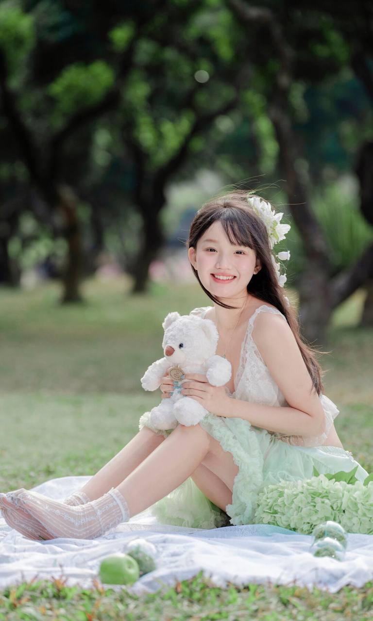 阳光下的甜美少女与她的毛绒小熊🌞🧸💕甜美少女 甜系毛绒写真 毛绒少女照