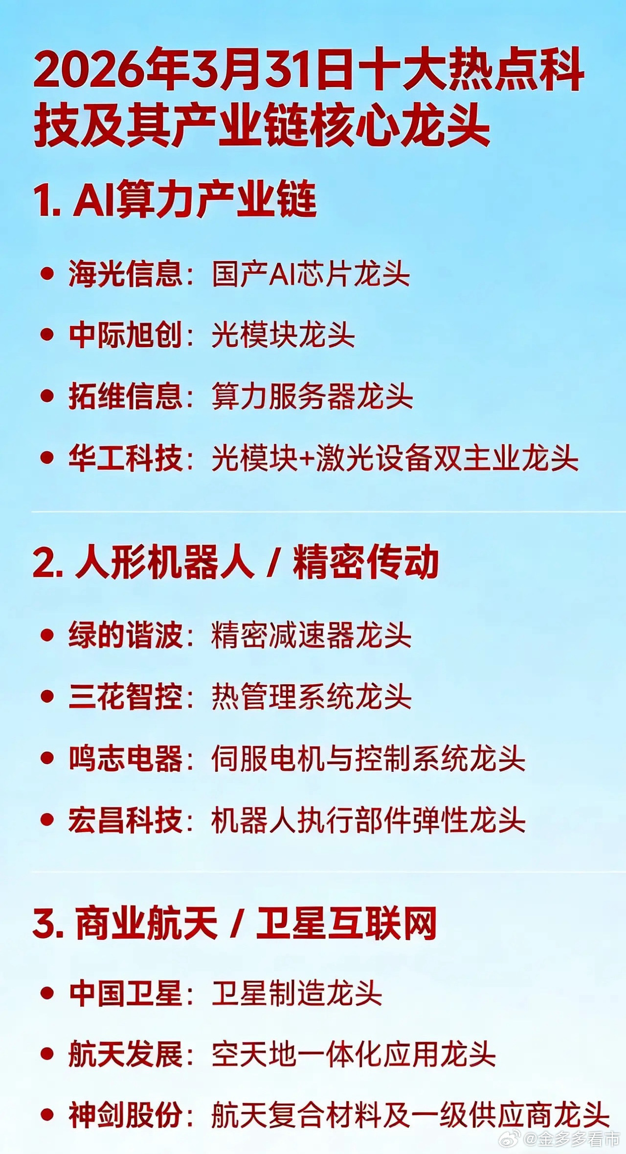 2026年3月31日十大热点科技及其产业链核心龙头1. AI算力产业链海光信息: