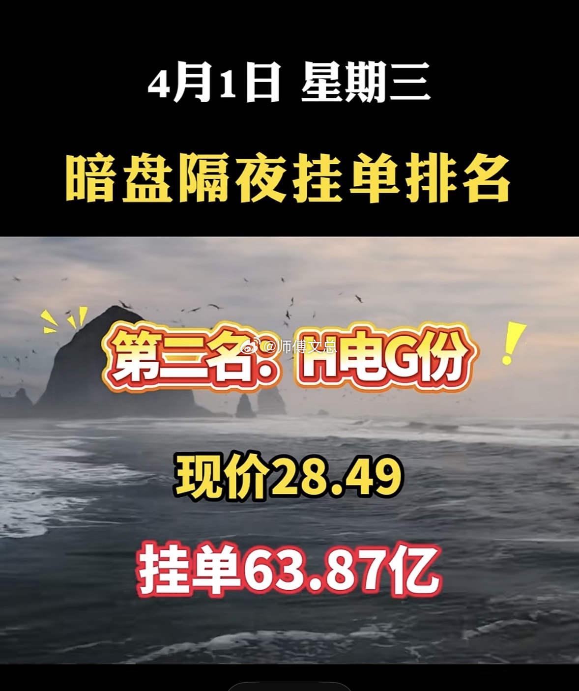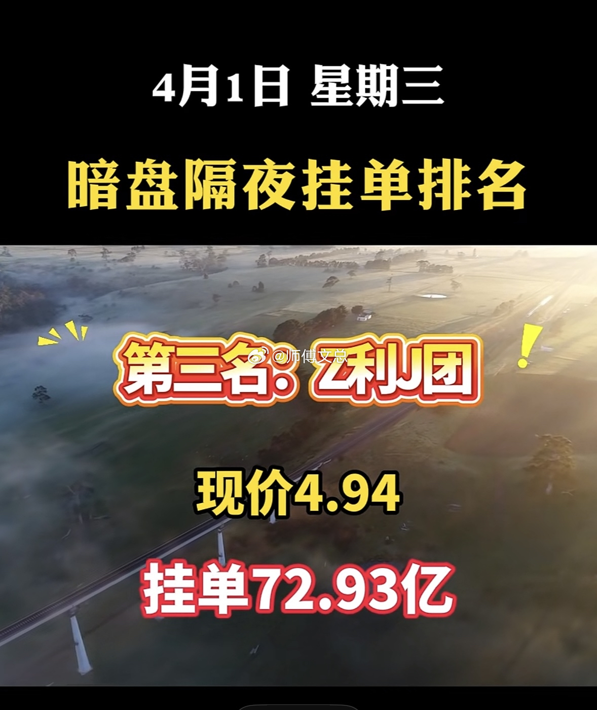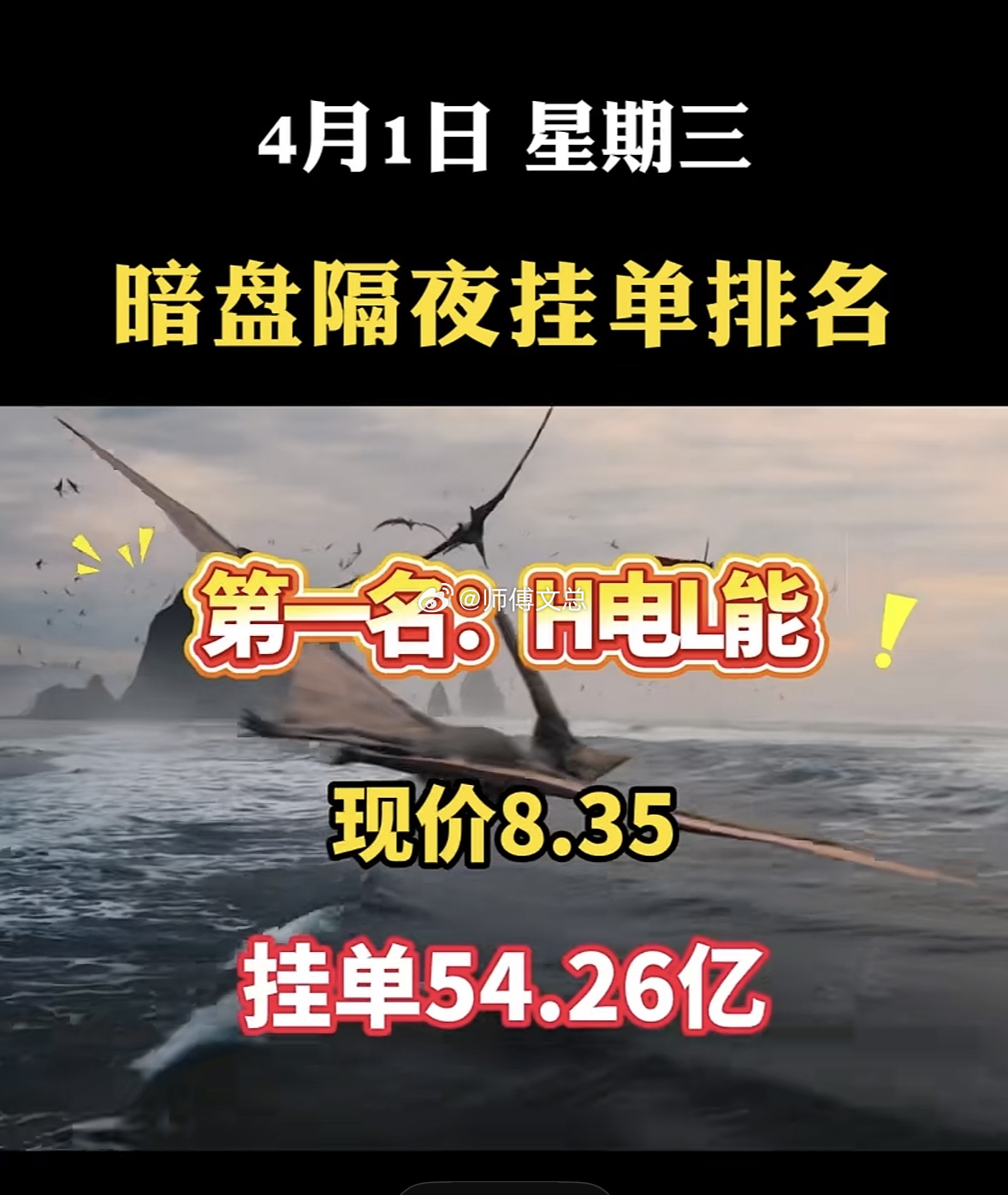 4月1日周三暗盘隔夜挂单排行榜一览表