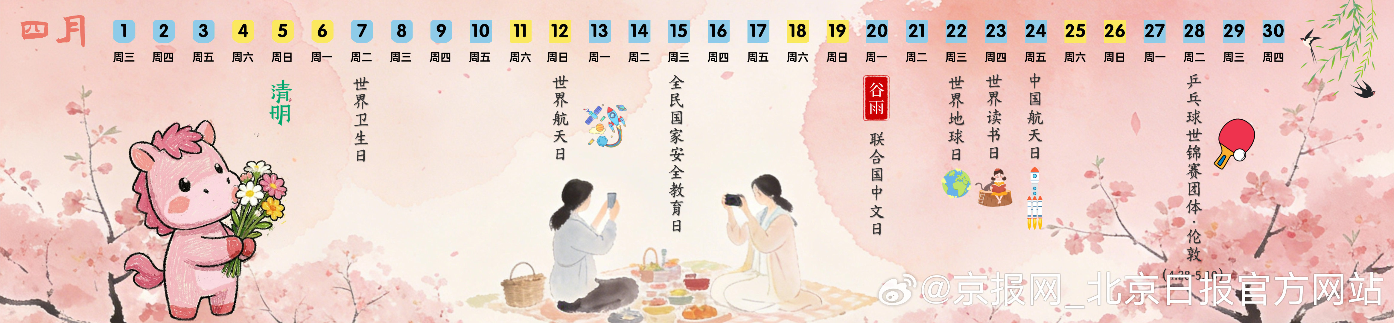 除了新闻日历(图3),我们还为你准备了壁纸日历(图2)和休息日日历(图1),长按保存即可使用。愿春风一路捎来好消息,愿你的日子,像人间四月天一样,温暖、治愈、松弛,顺利。(记者 张杨 钱绯璠;实习记者 付亚男 李竞择)