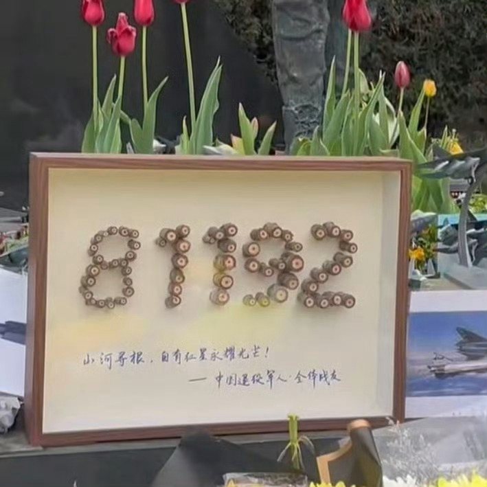 王伟烈士墓前摆满中国战机用红星杨树枝拼成的“81192”,中国退役军人全体战友!