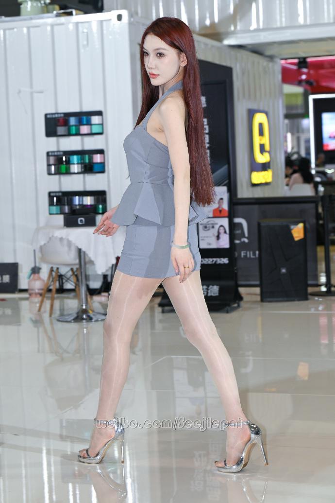 车模的肉丝会反光街拍时尚穿搭 大长腿