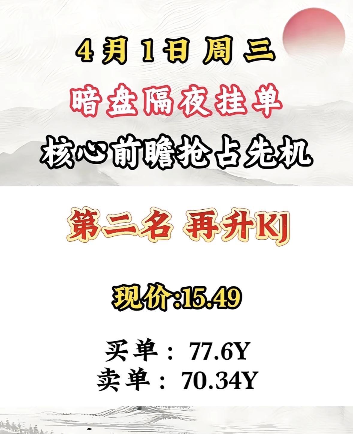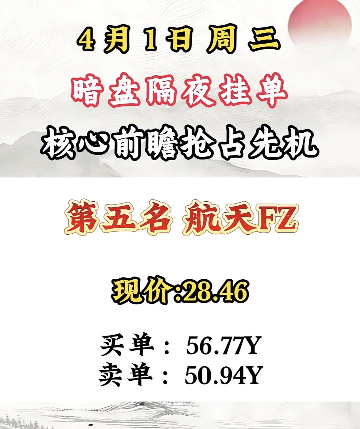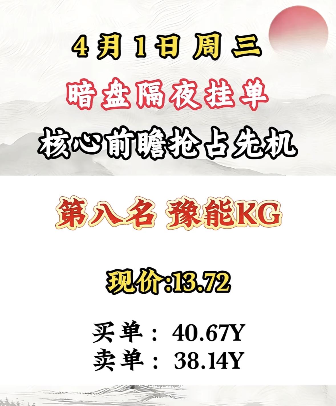 4月1日周三暗盘隔夜挂单排行榜出炉 4月1日豫能控股暗盘交易有点意思。现价13