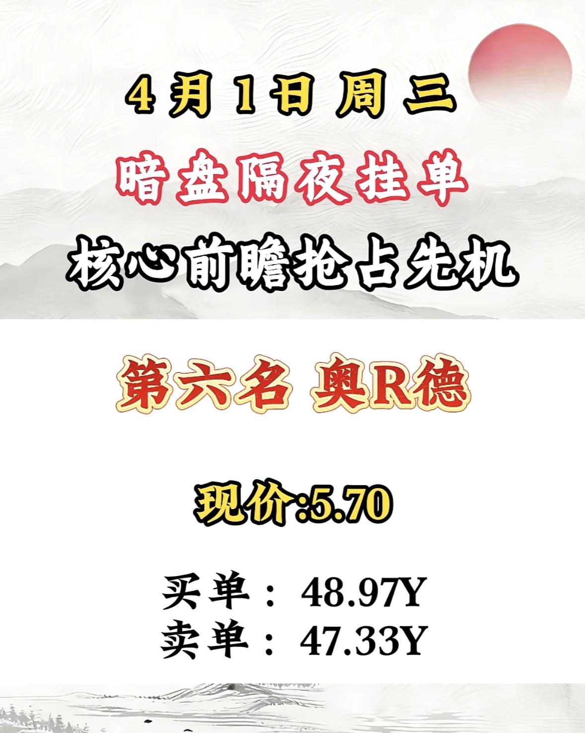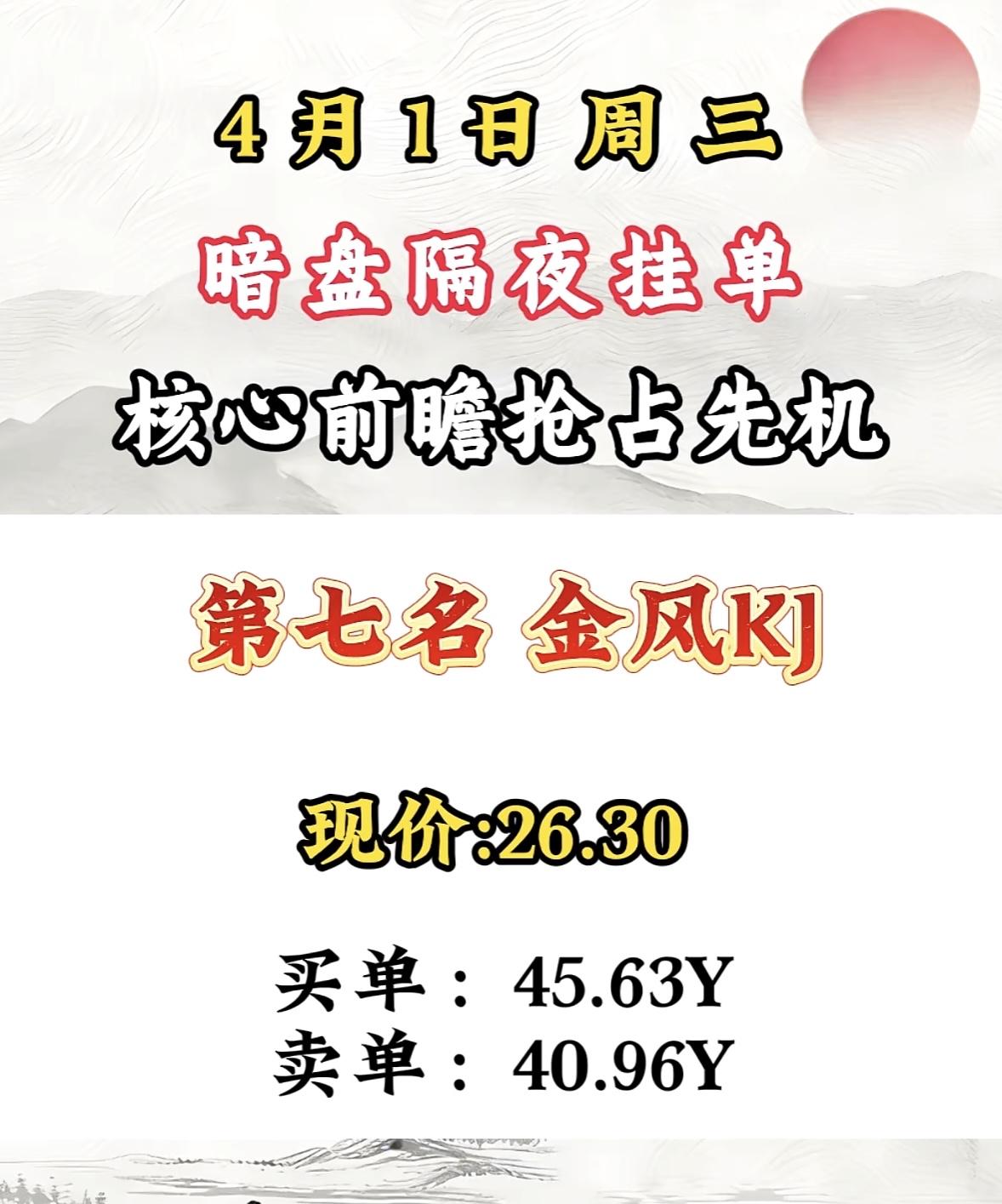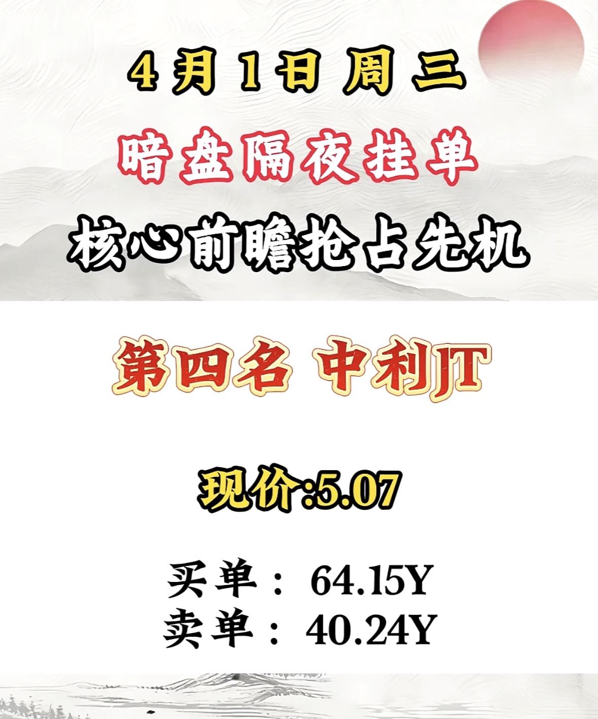 4月1日周三暗盘隔夜挂单排行榜出炉 4月1日豫能控股暗盘交易有点意思。现价13