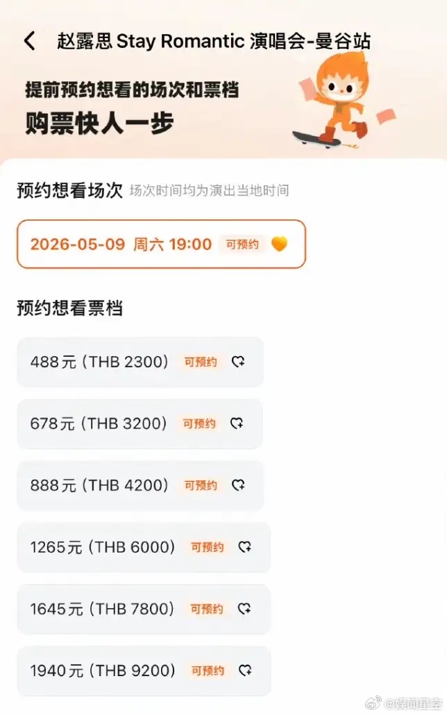 赵露思曼谷站演唱会官宣!赵露思要开演唱会了,很多人好奇为啥要在海外开演唱会,因为海外审核容易,内娱这边开演唱会要和文化,公安,消防等多部门申报,流程复杂耗时,审核也很严格,东南亚那边正在积极打造“演唱会国家”的形象,审批非常容易,而且去哪里举办演唱会还给高额补贴,场馆,租金,设备的费用都比较低,所以去东南亚办演唱会更节约成本,提高收益,另外,赵露思在内娱申请开演唱会,有可能会遇到前司阻碍,演唱会票价真不低,最低488,最高1940。