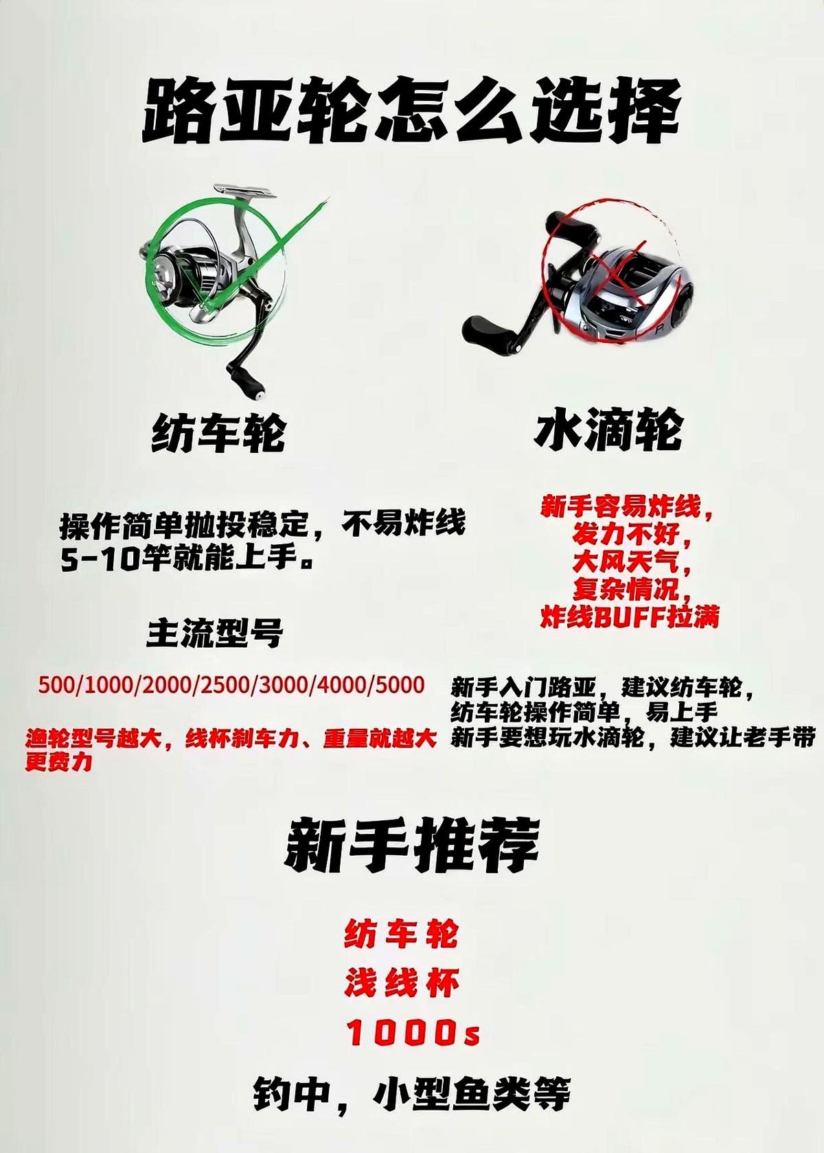 刚想玩路亚?别再瞎看了,装备就这四大件! 说实话,新手入门真没那么复杂。直接上一套直柄竿+纺车轮的组合,容错率高,根本不用担心炸线。竿子选个2米左右,快调的,抛投重量5到30克都行,通用性强。 轮子就上2500或3000型的,刹车力大于4千克,顺滑就行。主线用PE线,前面接一段碳素前导线,耐磨还隐蔽,用阿尔贝托结绑一下就完事。 鱼饵先从亮片、铅头钩配软虫玩起,匀速收线就能钓到鱼。预算几百到一两千就能搞定一套不错的,像禧玛诺、达亿瓦都有入门款。 记住,装备平衡最重要!别一开始就追求水滴轮,先玩明白了再说。