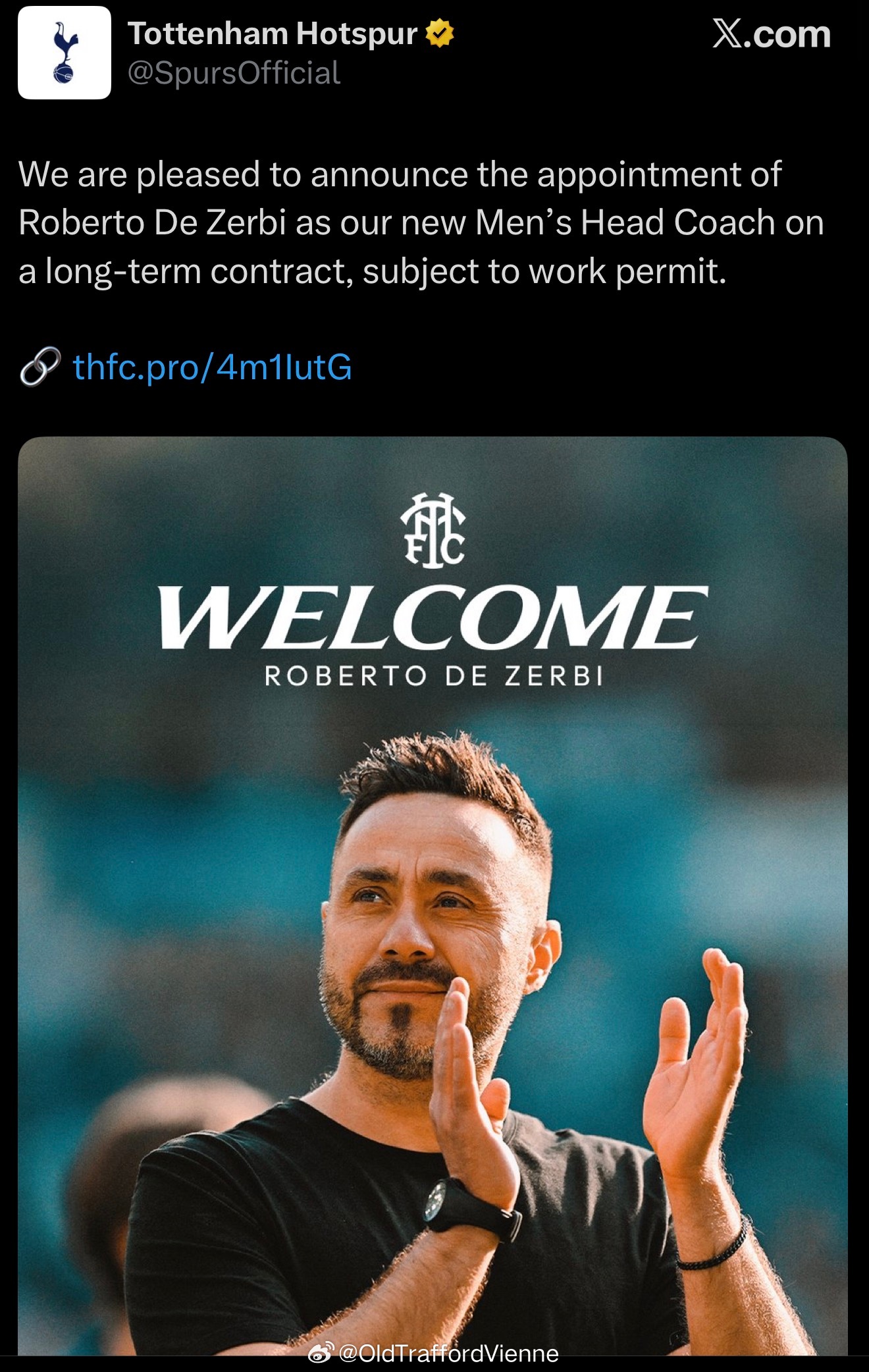 德泽尔比上任热刺主帅 官宣了5年合约
