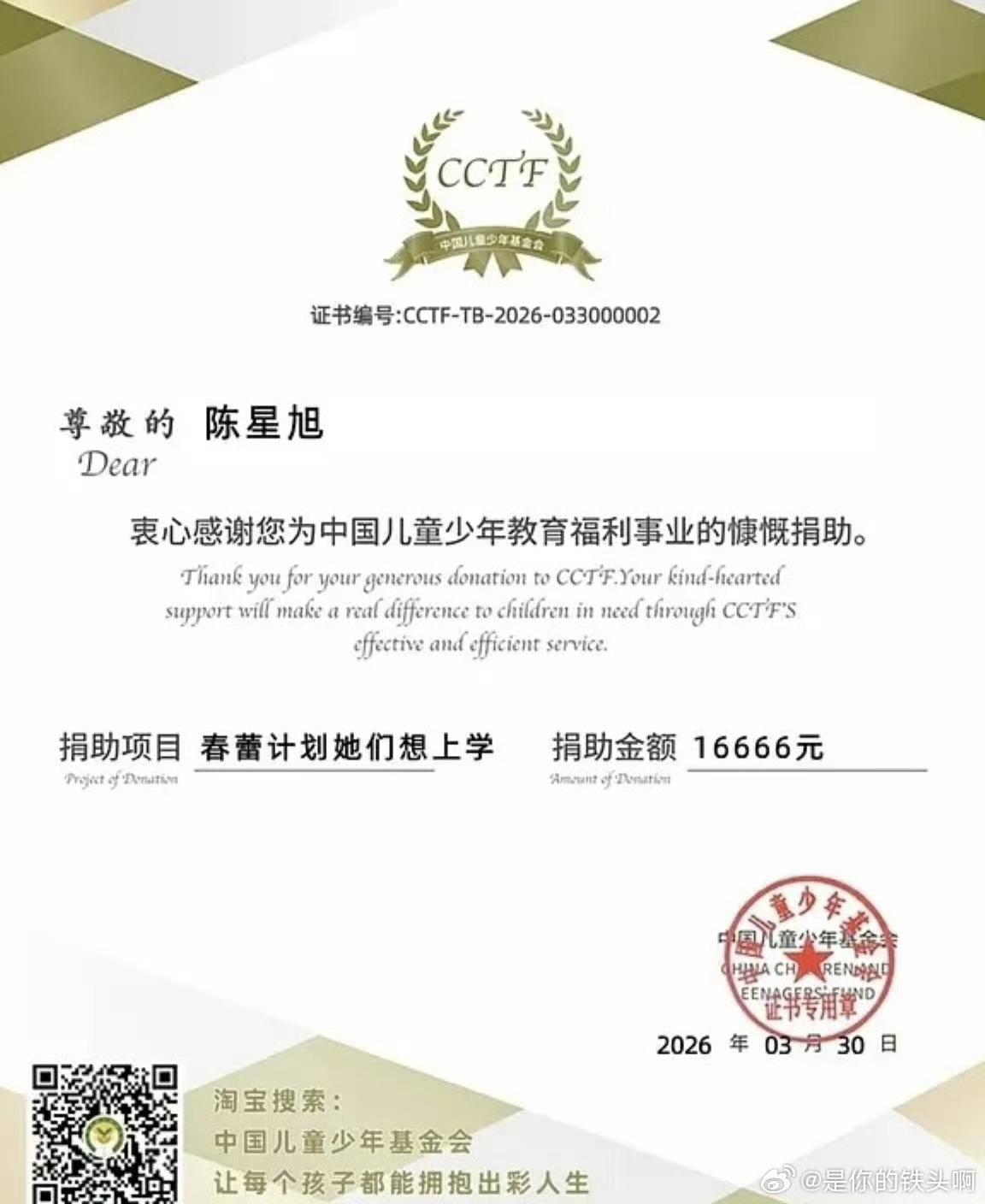 陈星旭粉丝在陈星旭生日之前做了公益应援,陈星旭逆应援买了奶茶,双向奔赴的爱意🥺