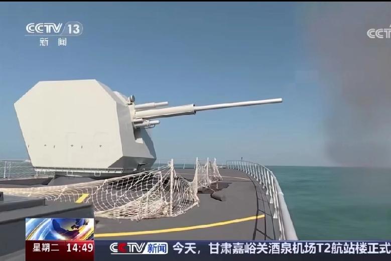 055大驱安庆舰主炮展示高仰角射击。内部输弹系统也同时曝光!