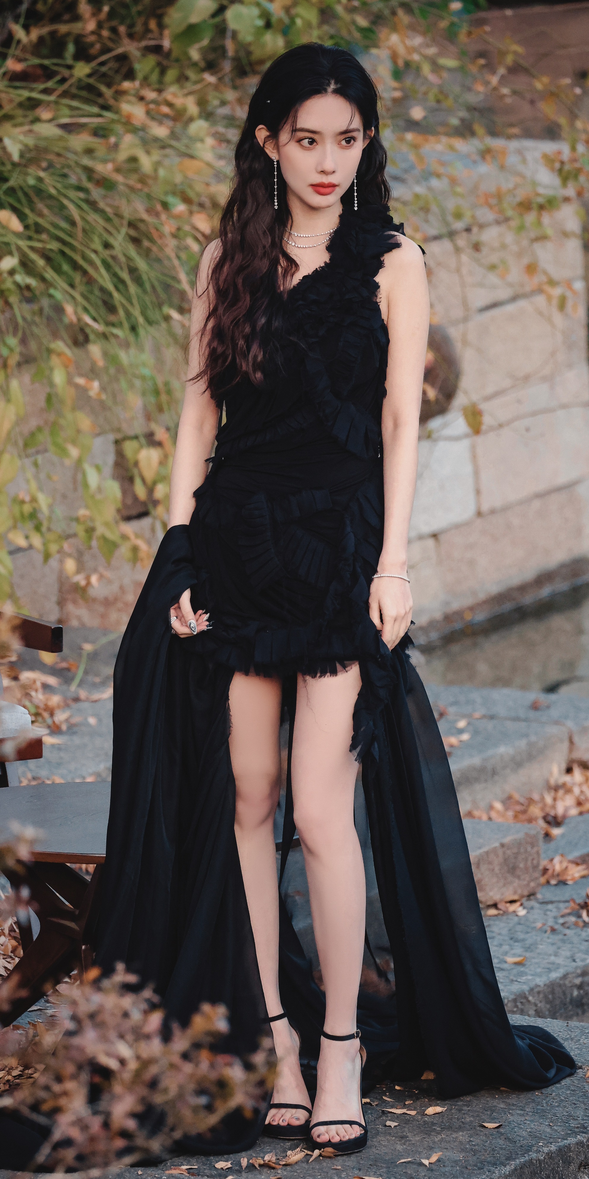 孟子义穿搭壁纸:高跟大长腿,柔美精致。孟子义