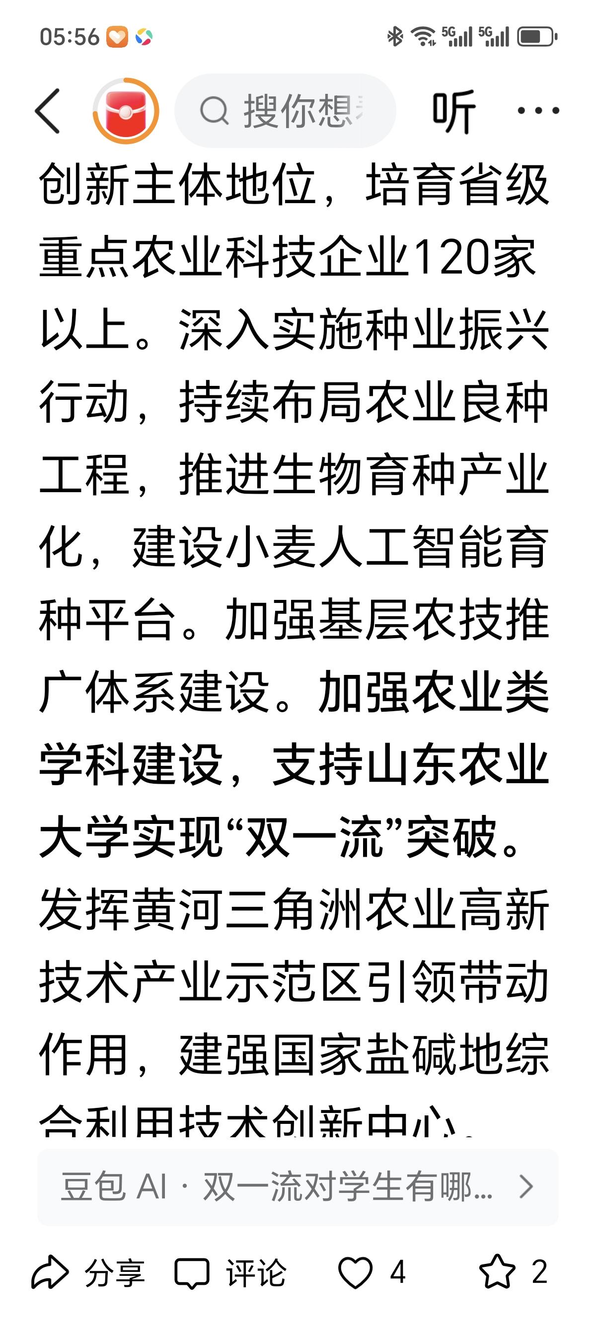 还是江苏会来事,现看到山东省委1号文件,清晰明确地表明支持山东农业大学争创第三轮