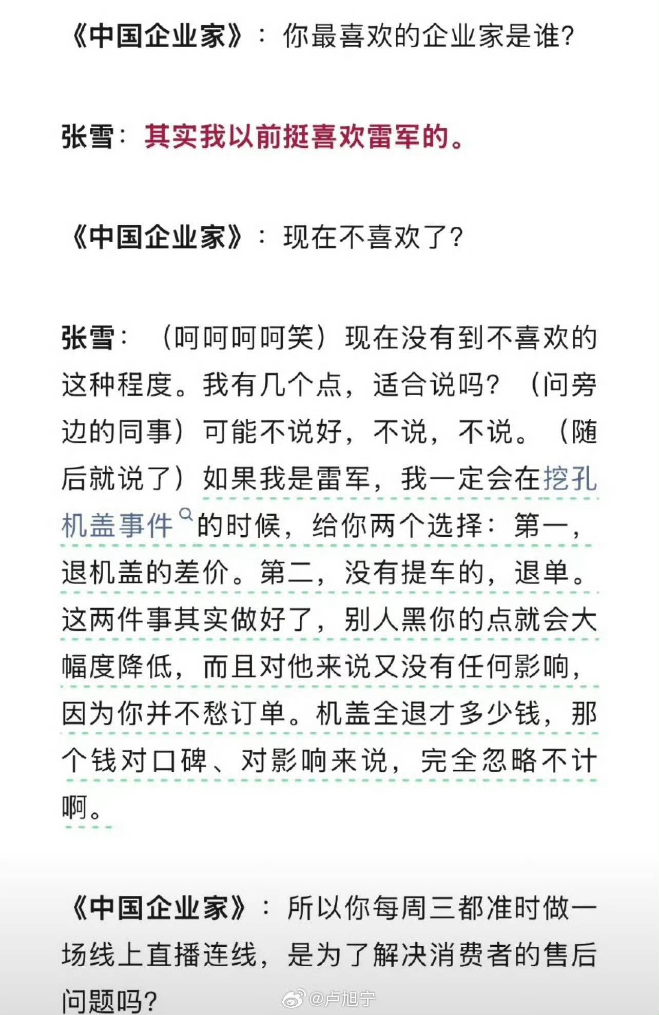 如果张雪知道,自己回答的问题,被某些人、某些群体哪来阴阳怪气雷军和小米,并迅速冲