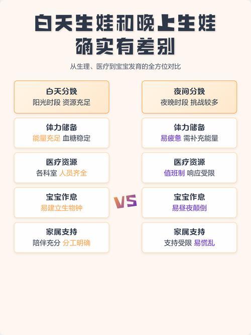 不是迷信,白天出生的孩子和晚上出生的孩子有何差别?看完你就知道了 这个问题从科学角度来拆解,确实存在可观测的差异。这些差异无关命运吉凶,而是由生物节律、医疗资源和早期环境暴露决定的。白天出生(通常指 6:00-18:00)与晚上出生(18:00-次日 6:00)的孩子,主要在以下 4 个方面存在统计学上的区别。 医疗资源配置方面:白天——医院人手最齐全,资深医师、麻醉师、多科室协作响应最快。如果出现脐带脱垂、大出血等紧急情况,抢救的“黄金窗口期”反应速度理论上更快。晚上——多为值班人员,人手相对精简。虽然现代三甲医院有完善的急诊预案,但多项流行病学研究发现,夜间出生的婴儿在围产期窒息风险及早期死亡率上,统计数值略高于白天(尤其在医疗资源欠发达地区)。 新生儿早期适应:白天——母亲在分娩时通常处于皮质醇的自然节律高峰,精力相对充沛;且出生后接触自然光照,有助于婴儿快速建立昼夜节律,减少出生后几天内的昼夜颠倒现象。 晚上——母亲褪黑素水平高,虽然有助于镇痛和宫缩,但产后易极度疲惫。夜间出生若立即处于昏暗环境,婴儿生物钟建立初期可能会稍微紊乱,不过这种差异在出生后 1-2 周内通过环境引导可完全纠正。 过敏与免疫风险:白天出生的孩子——出生后早期接触较高浓度的日光和室内环境微生物,其日后患过敏性鼻炎、哮喘的风险统计上略低于夜间出生的孩子。夜间出生的孩子——因出生后立即处于相对封闭、空气流通较慢的环境,且早期光照暴露不足,这一差异被认为与维生素 D 的初始储备速度及免疫系统早期驯化有关。但这一差异会随户外活动增加而消失。 母亲产后状态与早期亲子互动:白天分娩——母亲经过分娩后仍有完整的一整个白天进行哺乳、肌肤接触,且家人探视、陪护精力更充足,早期母乳喂养成功率在统计上略高。夜间分娩——母亲常处于极度困倦状态,若没有专业导乐或家人充分支持,产后第一小时的“黄金接触”可能因体力不支而打折扣。 以上情况也不要太纠结,虽然白天出生占了一点“初始资源调配”的小便宜,但晚上出生的孩子只要家庭照护得当,这个差距在满月前就能追平。