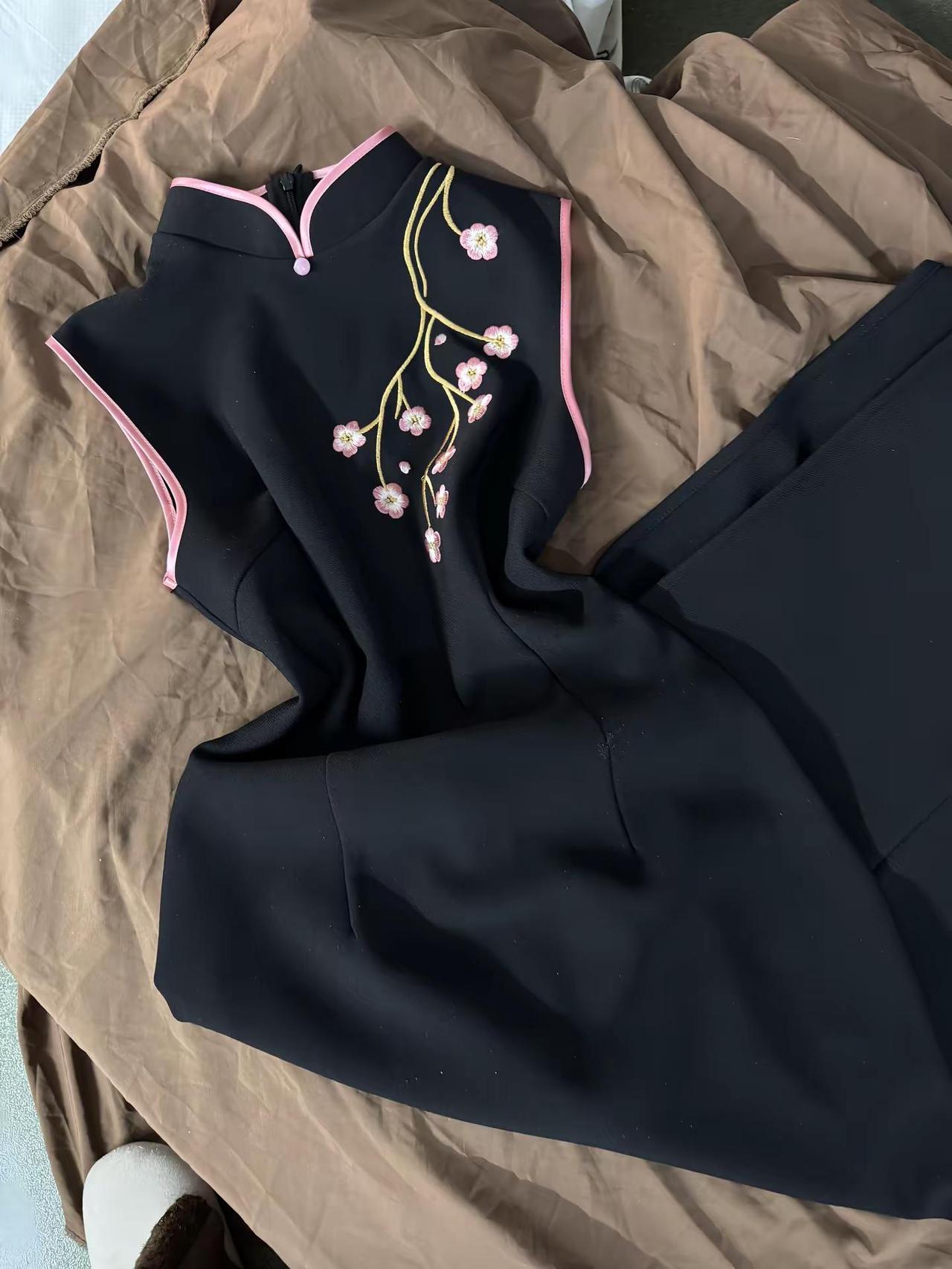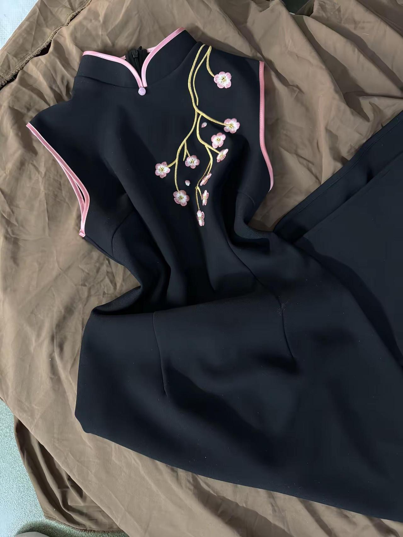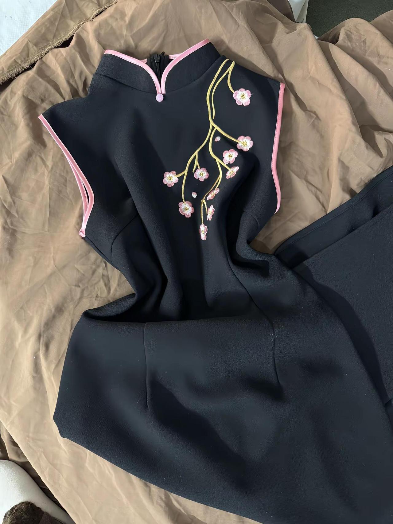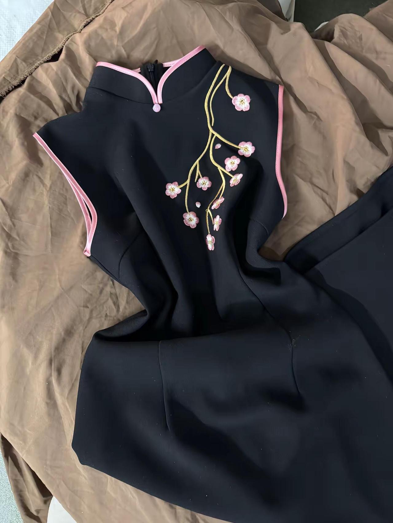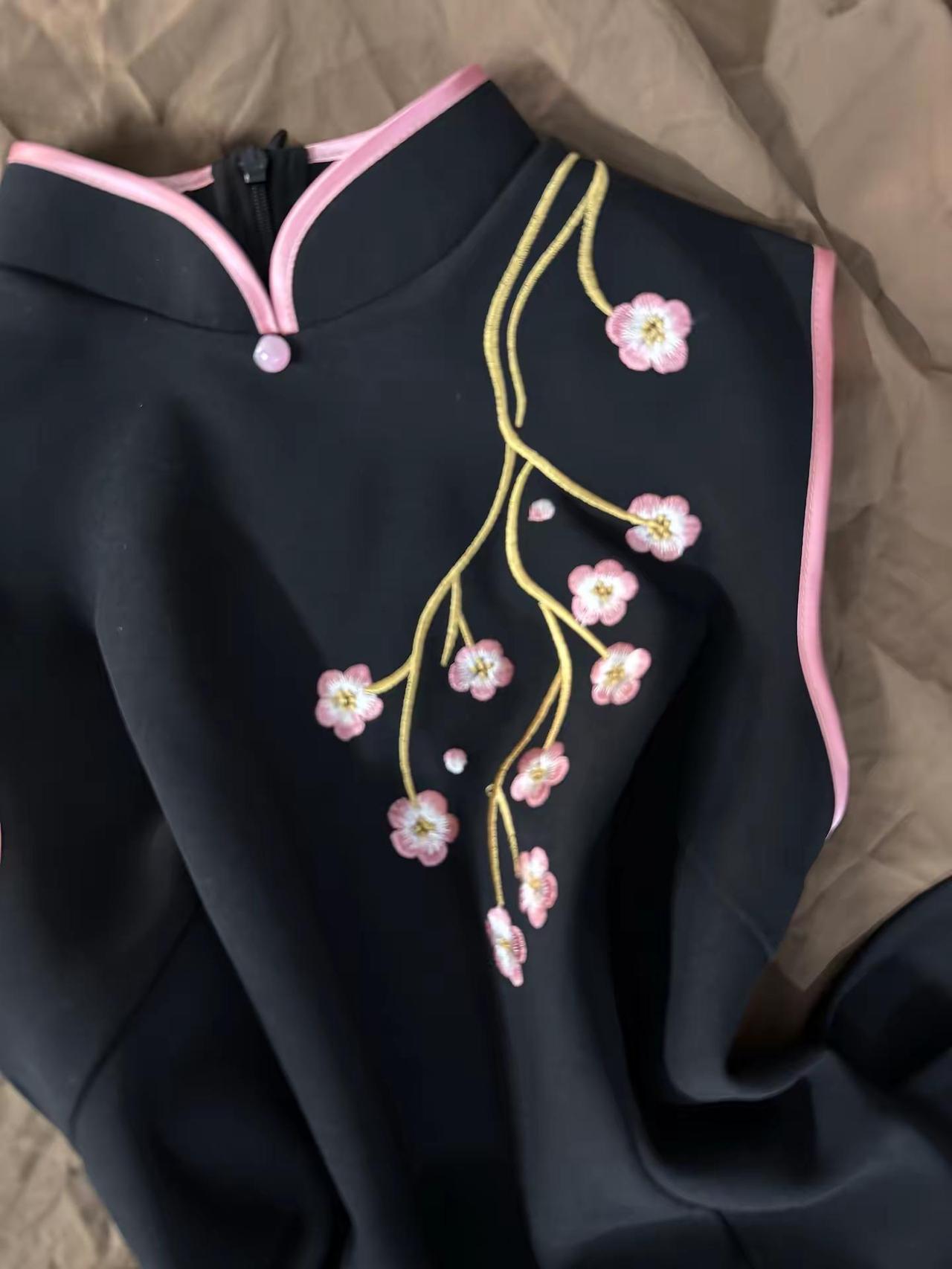 旗袍穿搭刺绣旗袍东方美学,樱花树下谁都很美
