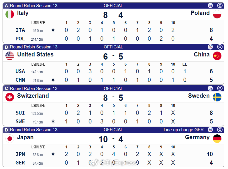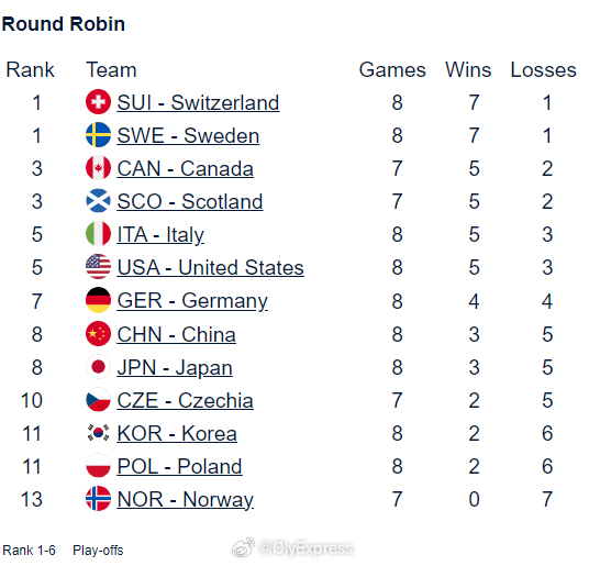 【男子冰壶世锦赛中国连输加拿大美国】2026男子冰壶世锦赛 3月31日美国奥格登,男子冰壶世锦赛循环赛中国队连战两场但均告负。在与加拿大的比赛中,中国队在4平的情况下第九局丢了4分,以4-8提前一局认输。短暂休息后中国队又与东道主美国战至加局,以5-6惜败。目前中国队3胜5负排名第8。北京时间4月1日23时,中国队将迎战5胜2负的苏格兰。